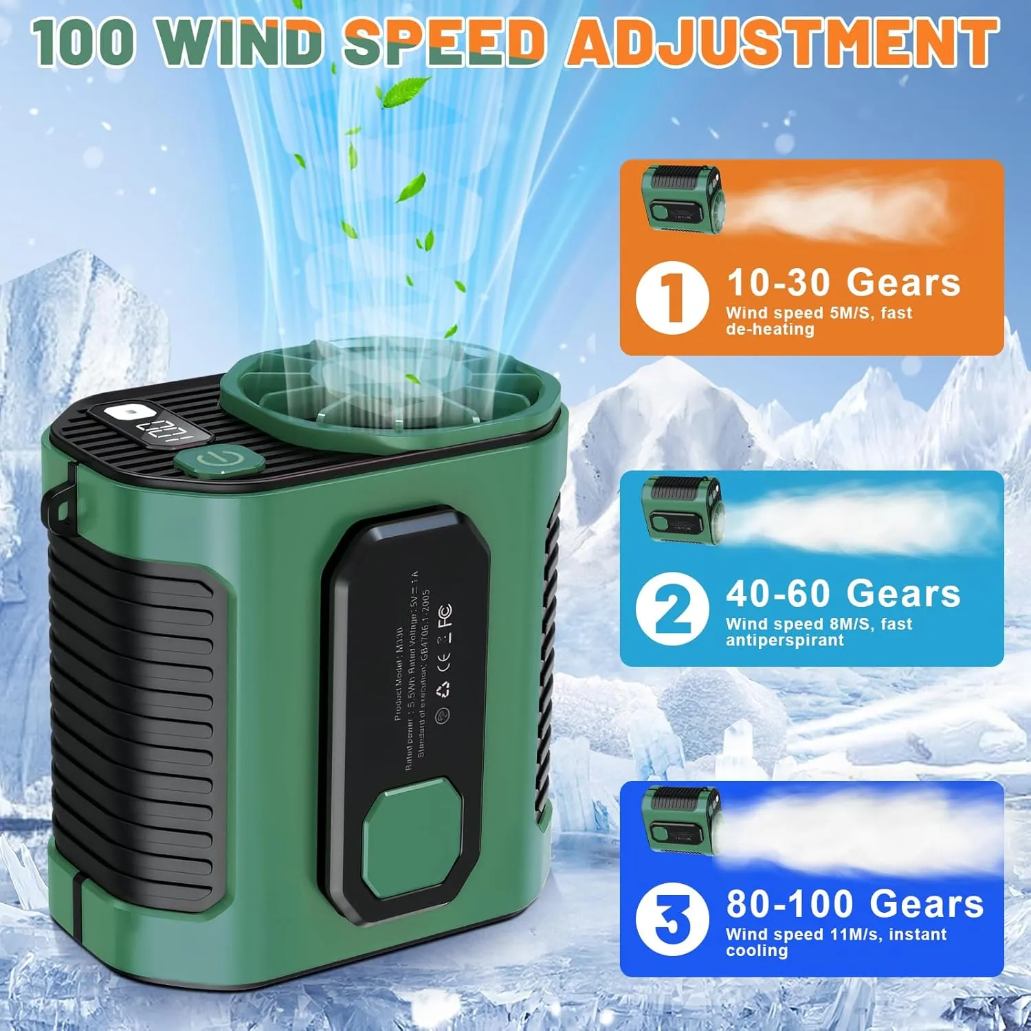 Portable Waist Fan with Clips, LED Light, Battery Display Screen, Cool Clip Fan Under Shirt & Belt Fan, Lightweight, Rechargeable (Green)