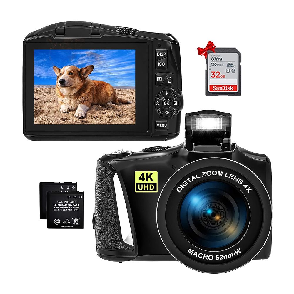4K Digital Camera with 32G SD Card Autofocus, 48MP Vlogging Camera Anti-Shake, Compact Travel Camera 16X Zoom (2 Batteries)