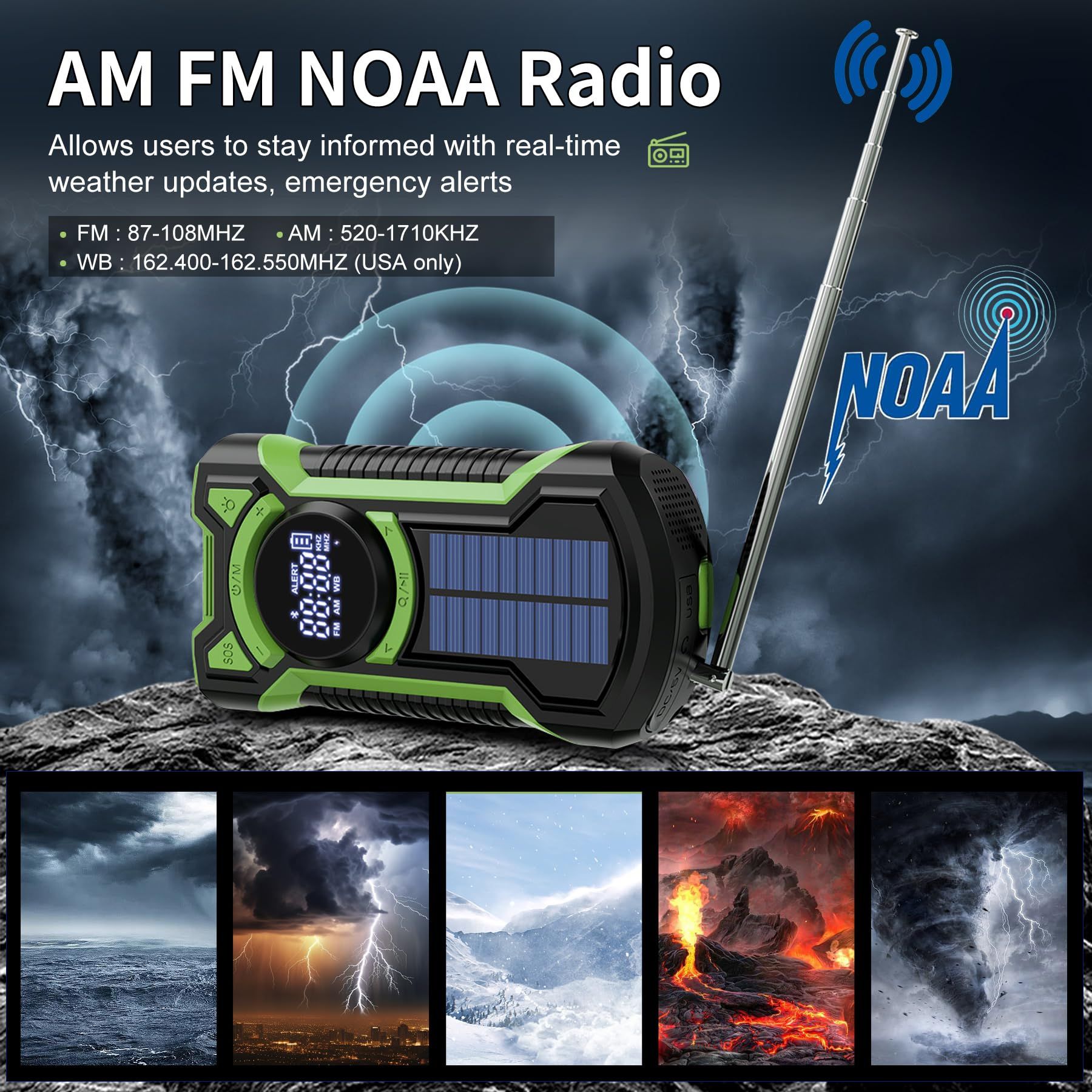 Portable Emergency Weather Crank Radio 4000mAh,Solar Powered,Hand Crank,AM/FM Weather Alert Radio,Aux Music Play,USB Cell Phone Charger,SOS Alarm,LED Flashlight