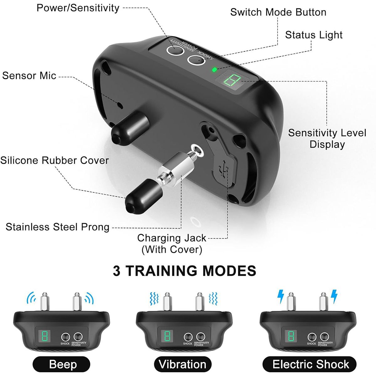 Dog Bark Collar,Automatic Anti Bark Collar with 8 Adjustable Sensitivity for Large Meduim Small Dogs,Smart Rechargeable Training Barking Collar