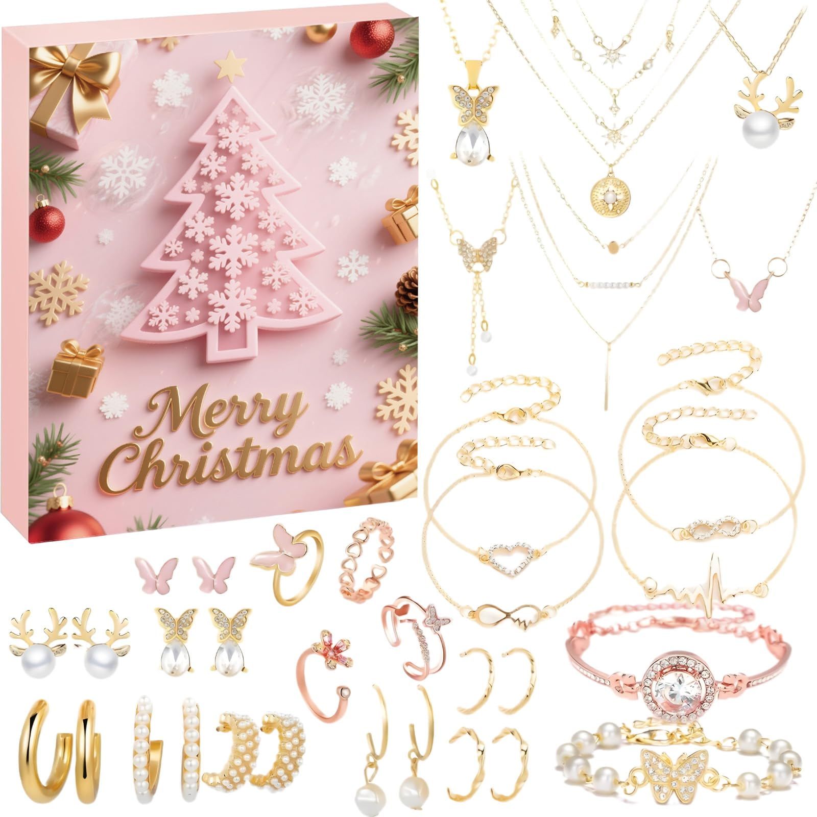 Jewelry Advent Calendar 2025,Christmas Countdown 24 Days Calendar with Fashion Necklace,Bracelet,Earrings & Ring,Christmas Surprise Gifts