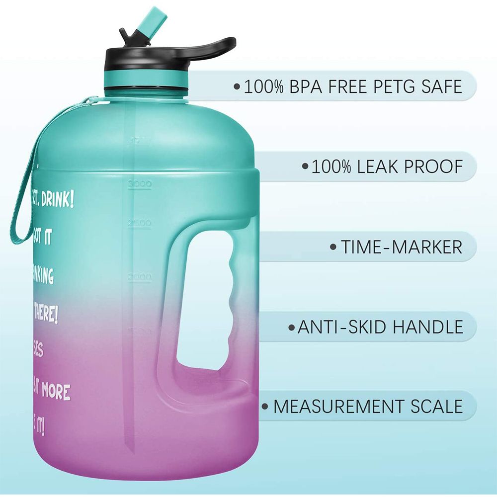 1 Gallon/128oz Motivational Water Bottle with Time Marker And Straw BPA Free