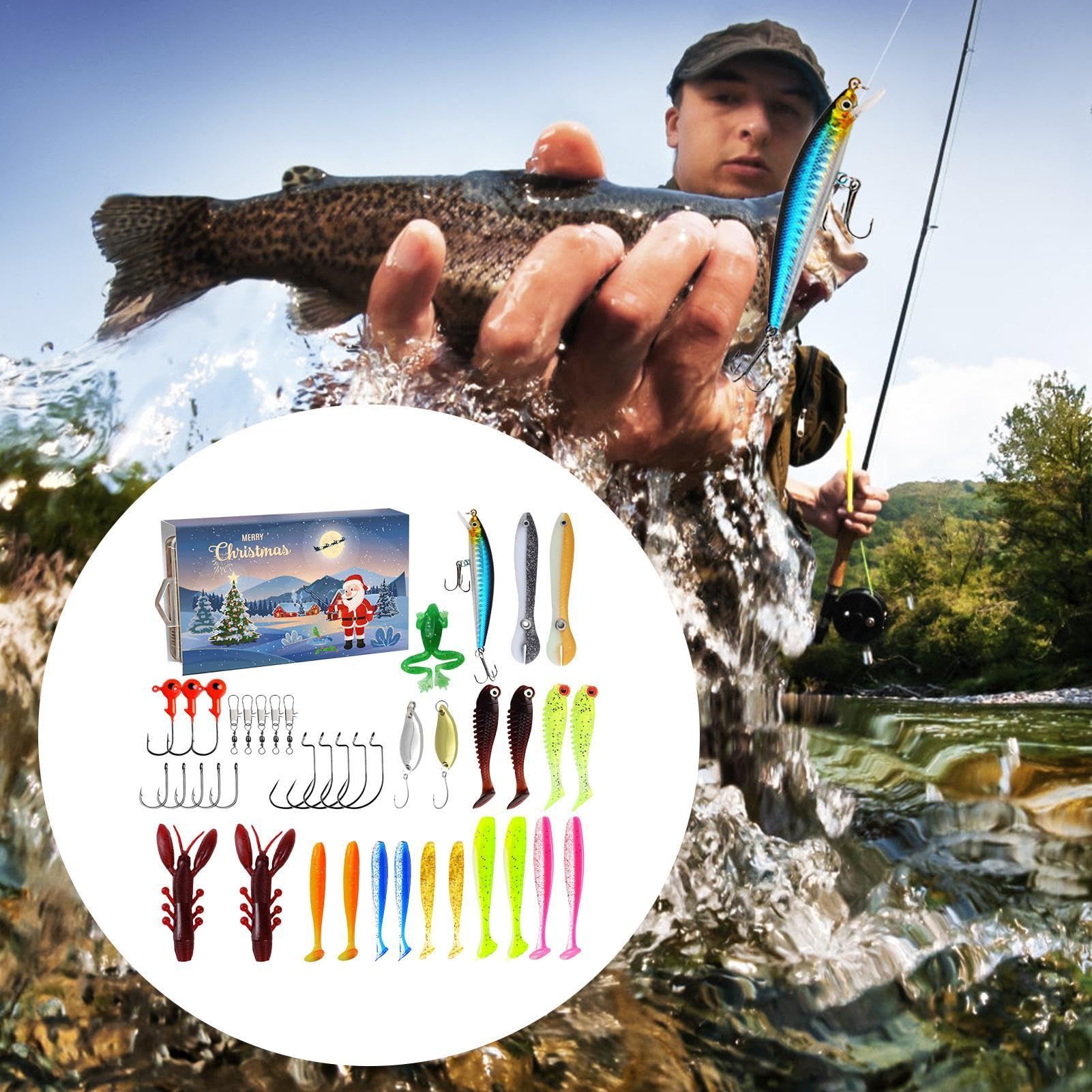 24 Pcs Fishing Gear Lures Bait Set Christmas Countdown Advent Calendar Christmas Fishing Gifts For River Sea Pond
