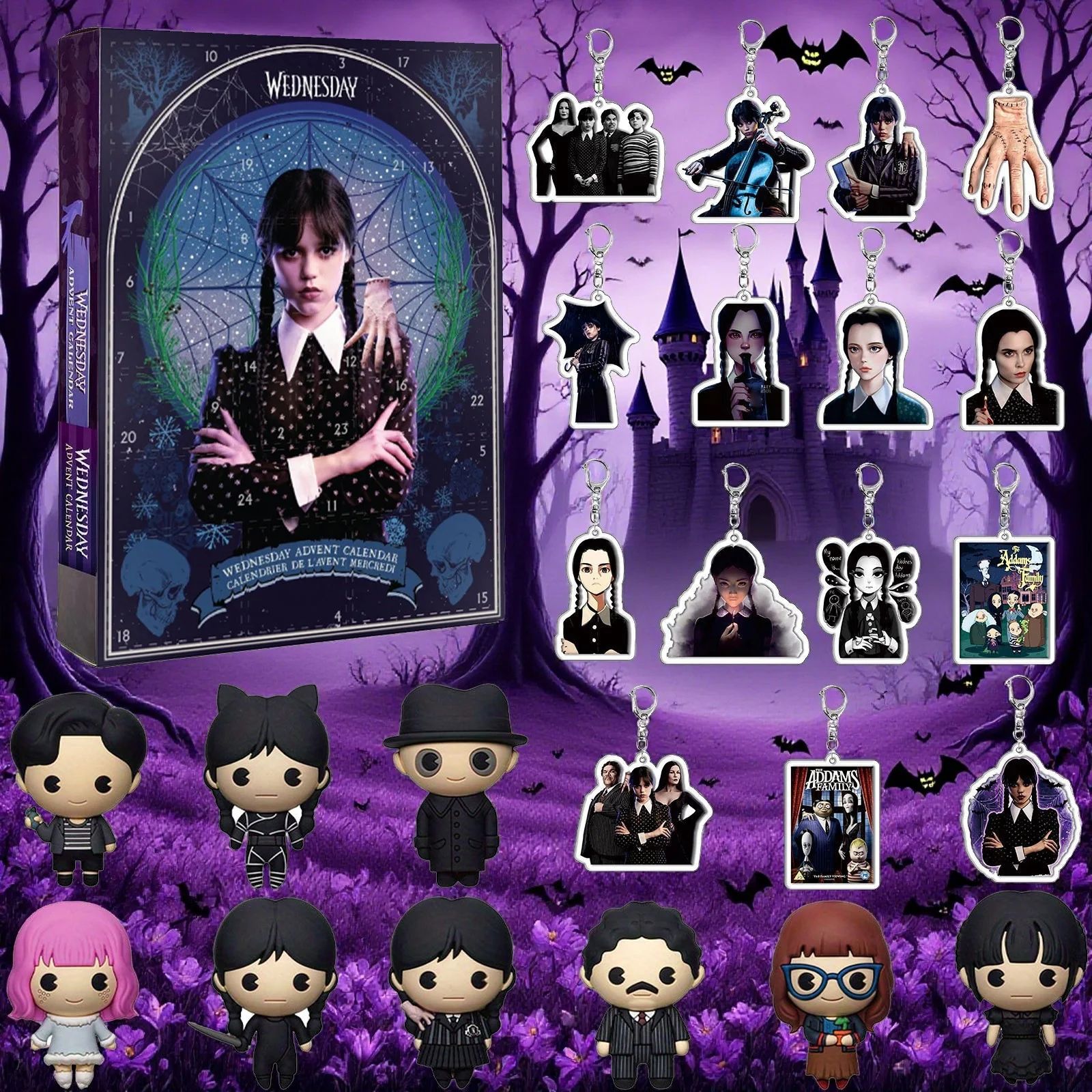 Wednesday Addams Christmas Countdown Advent Calendar with Characters Keychain Hanging Ornaments Decor For Chrisimas Gift Decoration