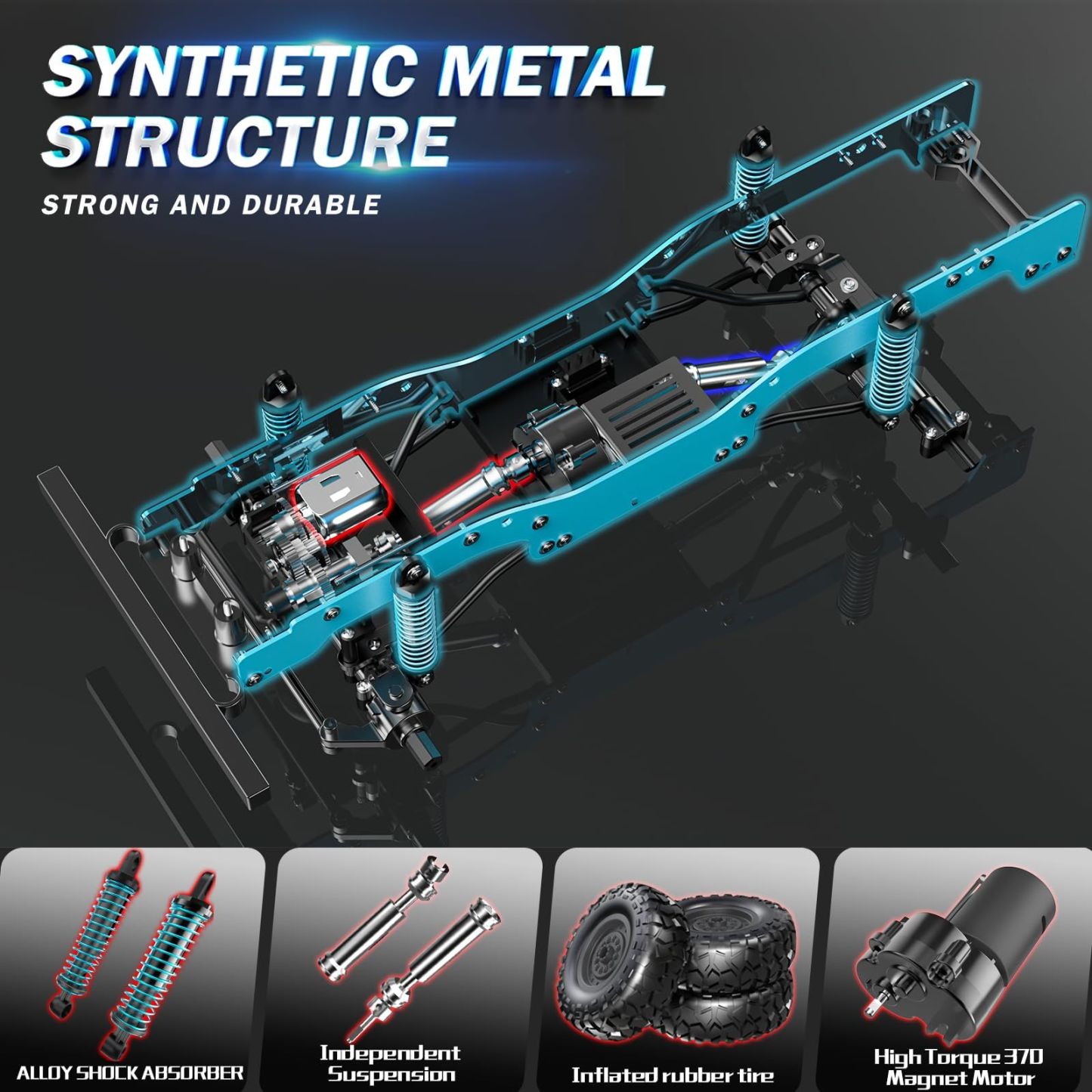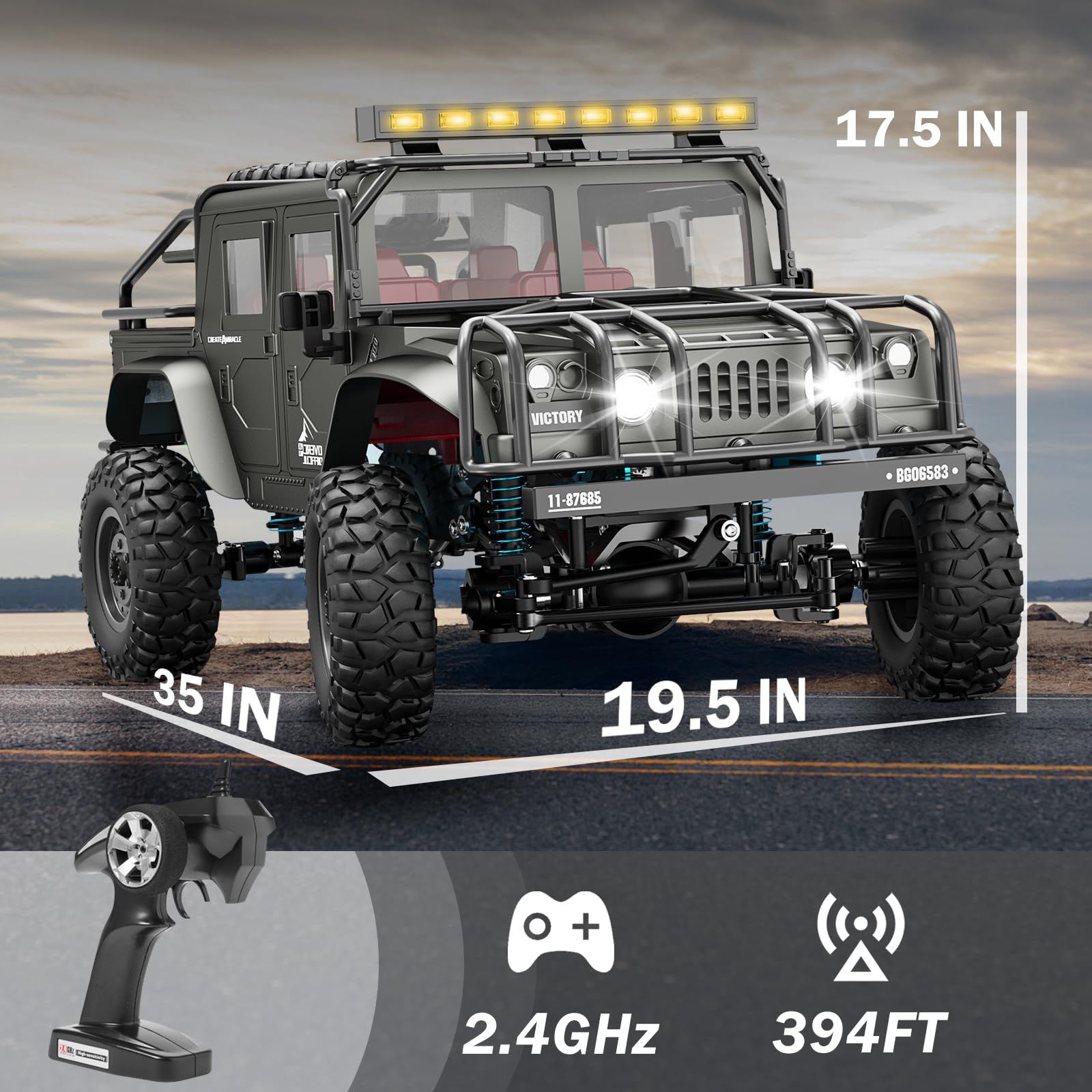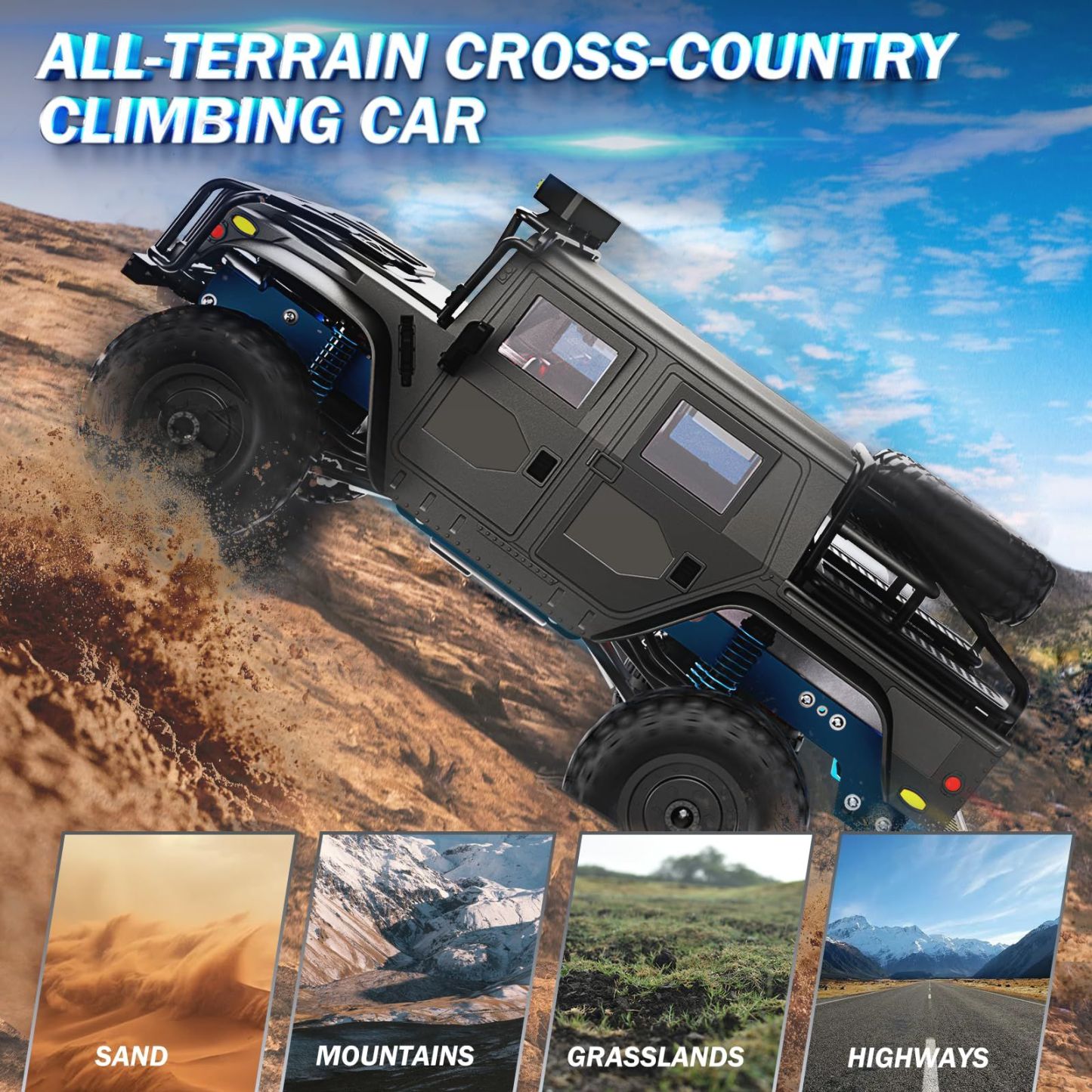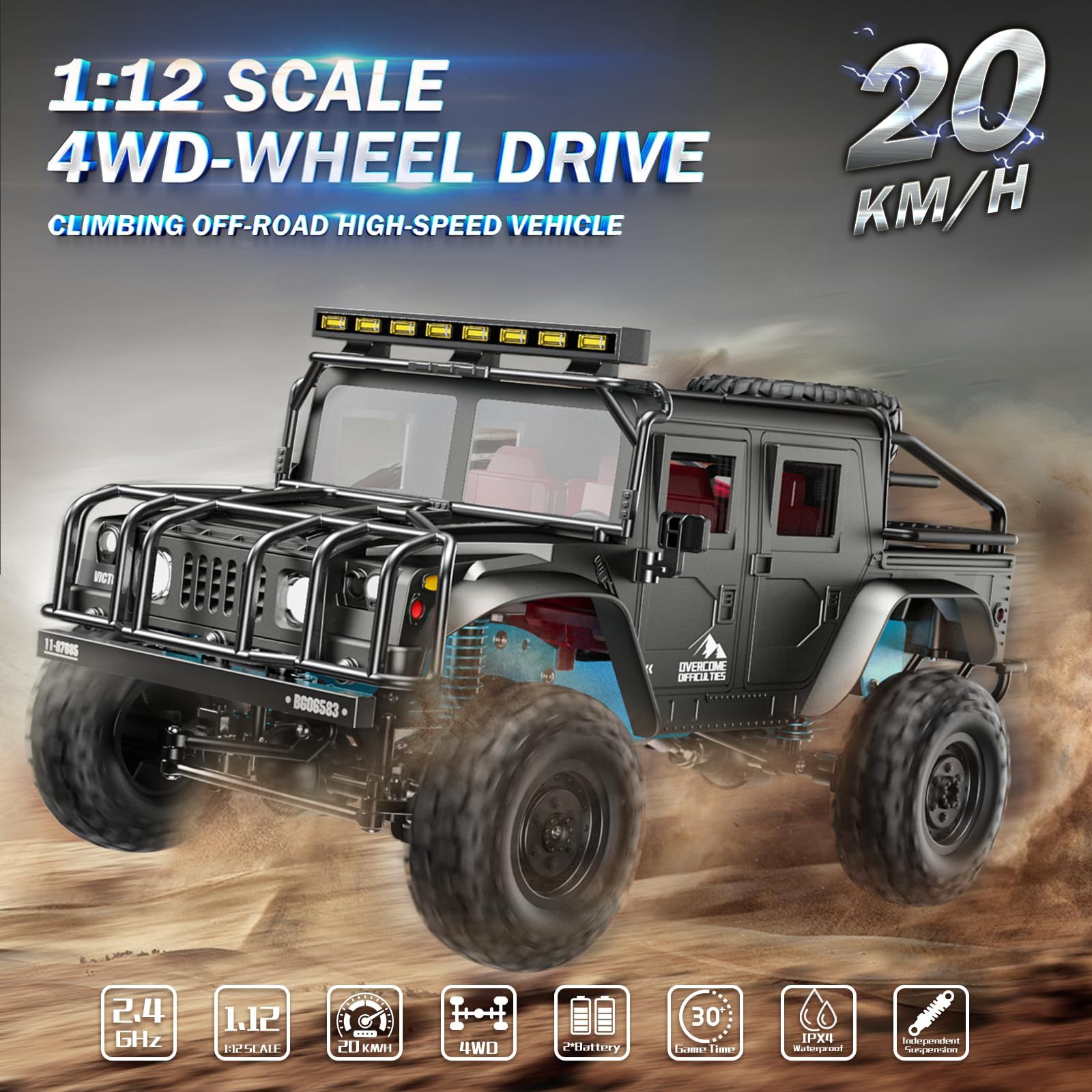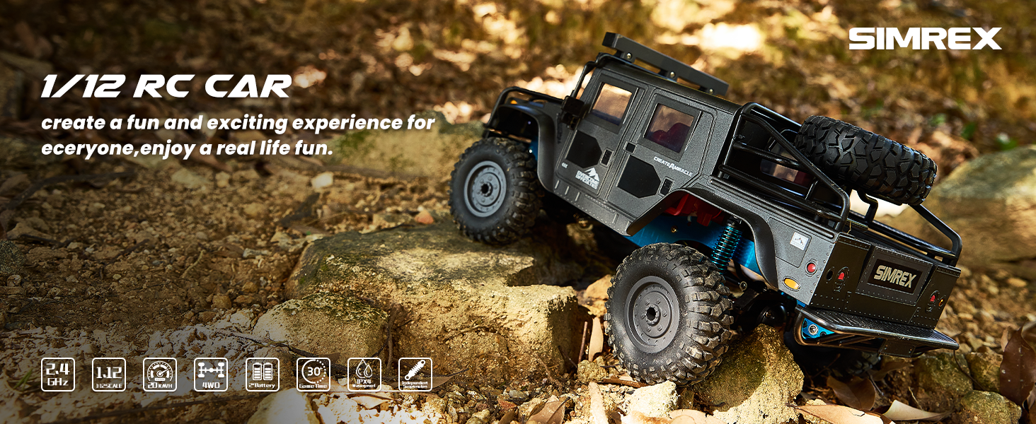 1:12 Scale All-Terrain Remote Control Car,4WD RC Cars with 2.4 GHz,RC Climbing Truck,IPX4 Waterproof Off-Road Vehicle with Two Rechargeable Batteries