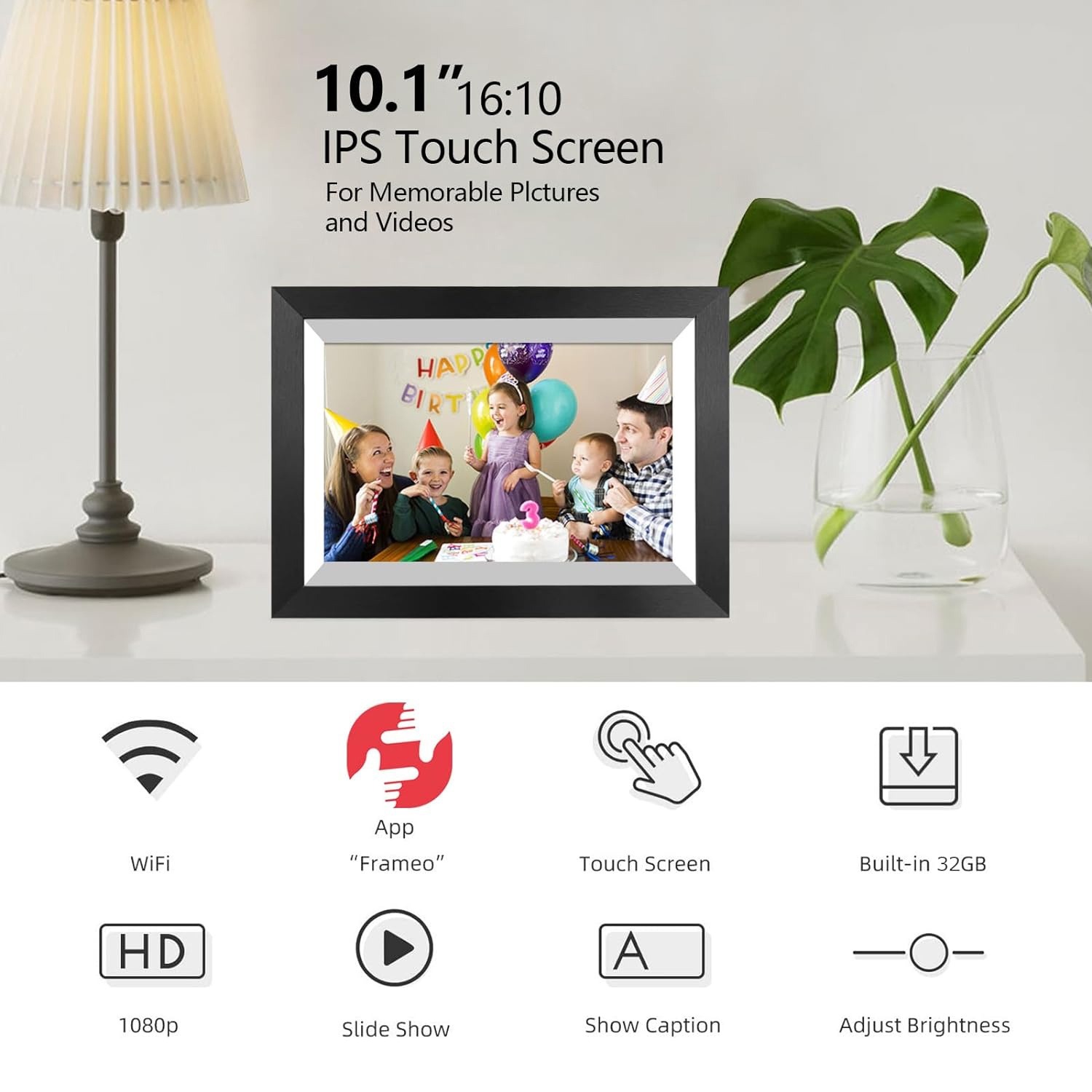 10.1 Inch Smart WiFi Digital Photo Frame 1280x800 IPS LCD Touch Screen,Auto-Rotate Portrait and Landscape,Built in 32GB Memory (Black Wooden Frame)