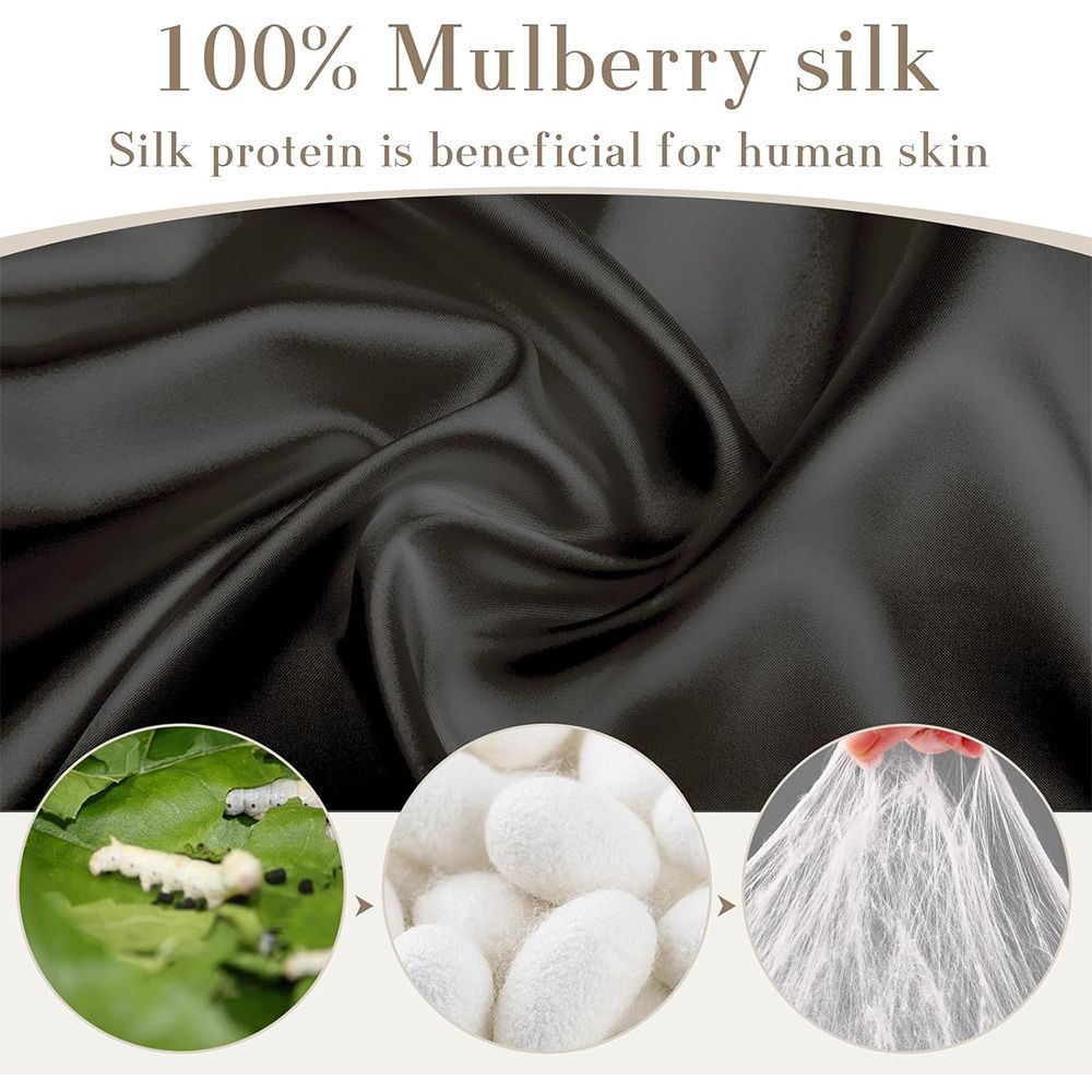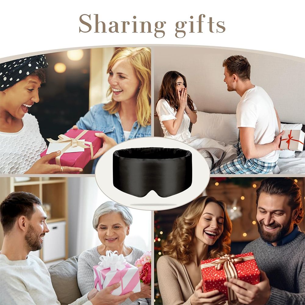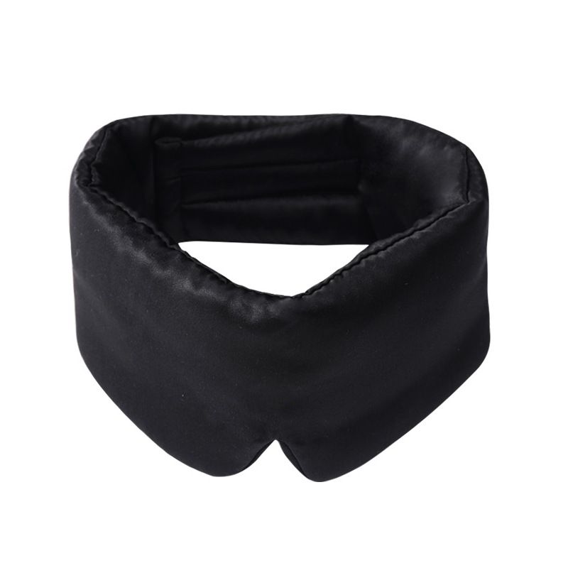 100% Mulberry Silk Sleep Mask Eye Mask for Women Man with Adjustable Band, for Side Sleeper Blackout Sleep Mask for Travel Rest, Black