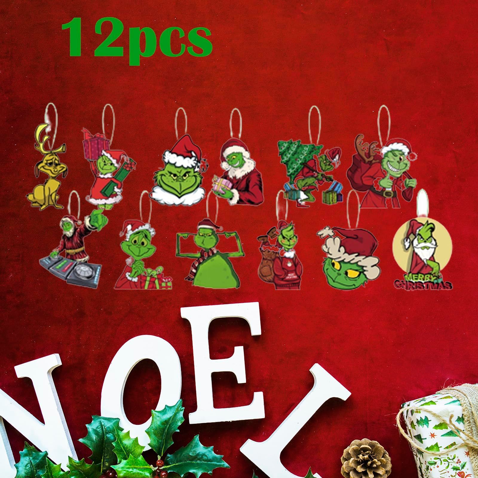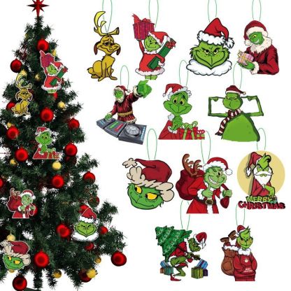 12 Christmas Grinch Hanging Ornaments Christmas Tree Decorations for Party New Year Birthday Ideal Festive Decor