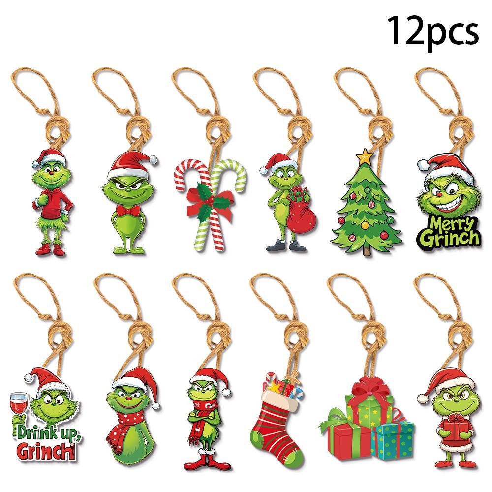 12Pcs Grinch Cartoon Elf Christmas Tree Hanging Ornaments For Christmas Party Decoration