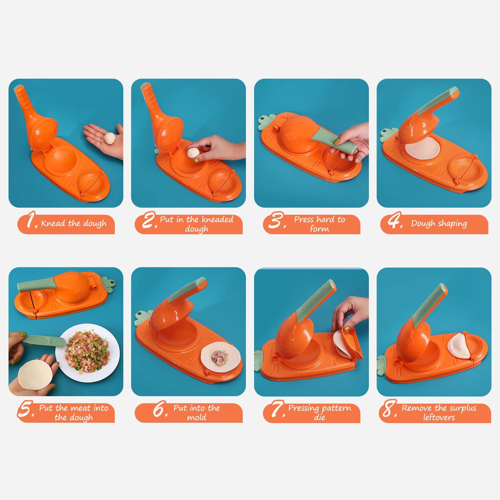 2 In 1 Dumpling Maker, Kitchen Dumpling Making Tool, Manual Mould, Baking Pastry Manual Artifact for Pressing Dumpling Skin Wrapper Mould (Green)