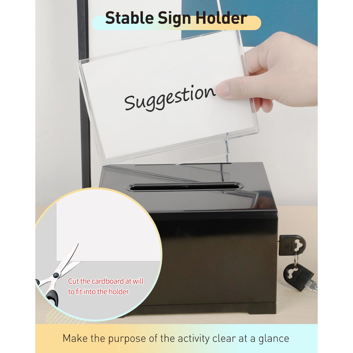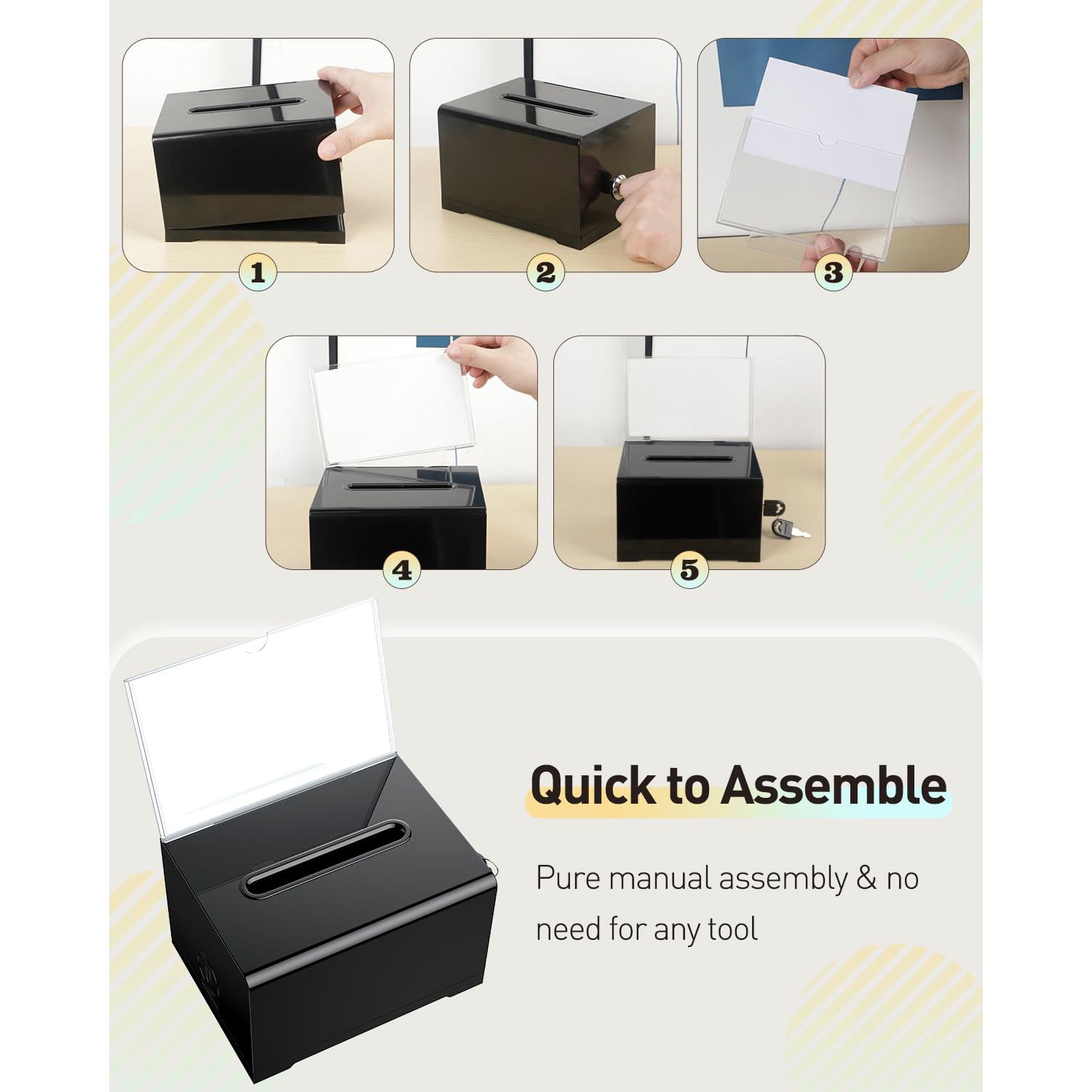 2 Pack Black Acrylic Donation Box for Fundraising Suggestion Box with Slot and Lock Plastic Ballot Box with Sign Holder Storage Container