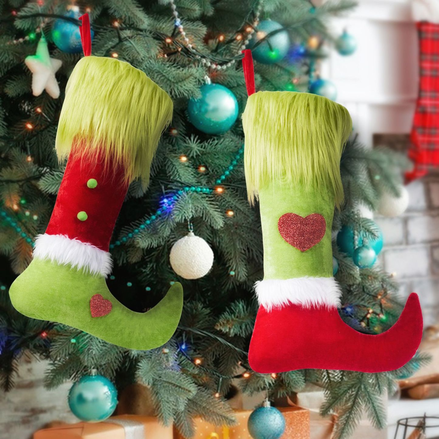 2 Pack Grinch Christmas Ugly Stockings Christmas Decorations Grinches Decor Ornaments Holiday Home Indoors