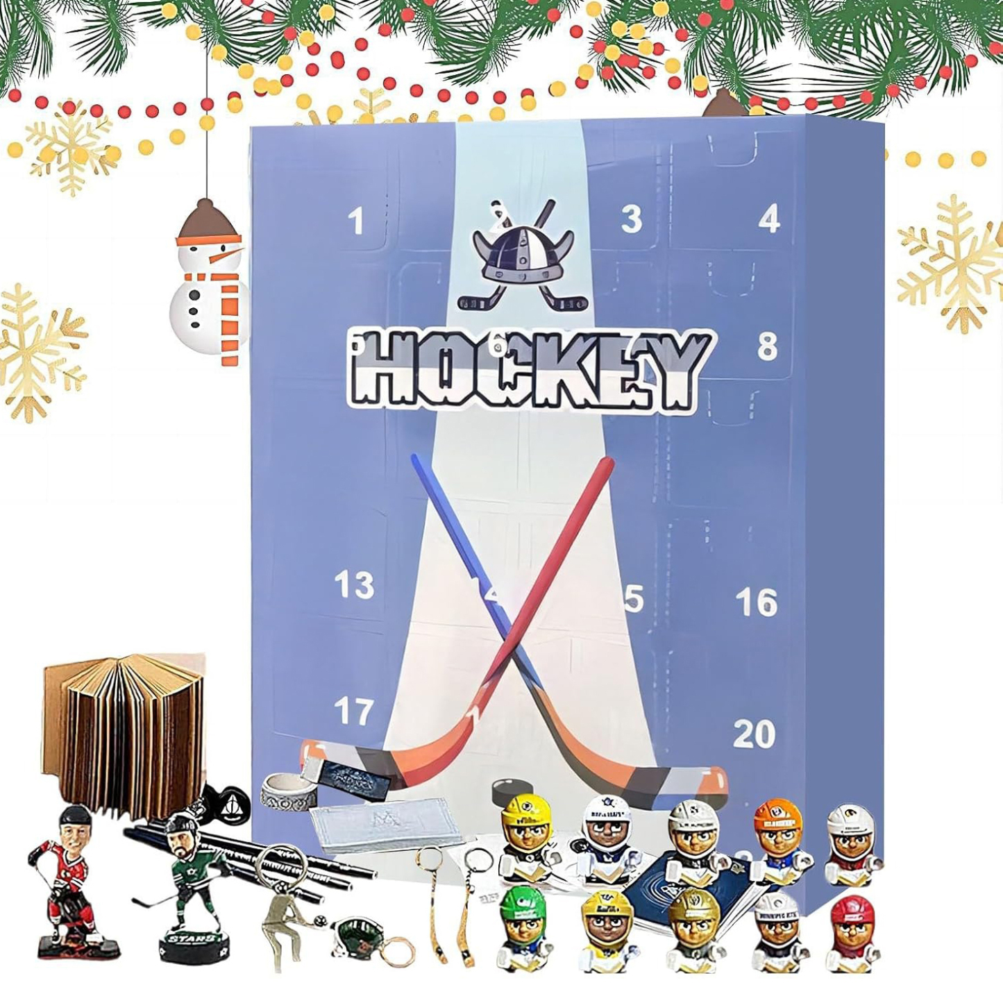24 Door Hockey Advent Calendar Ice Ball Miniature Keepsake for 24-Day Holiday Countdown and Christmas Decorations