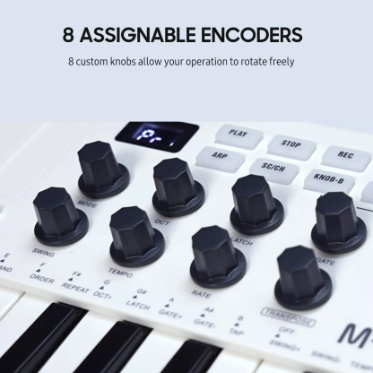 - Seamless Integration: The M-VAVE MIDI keyboard integrates seamlessly with your music production setup. It features 25 velocity-sensitive keys, 8 RGB backlit velocity-sensitive pads, 8 assignable rotary encoders, and 2 capacitive touch strips that flex. Whether you're a beginner or a pro, this MIDI controller keyboard is designed to enhance your workflow and take your music to the next level.