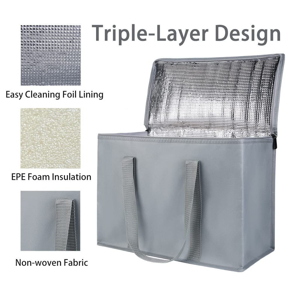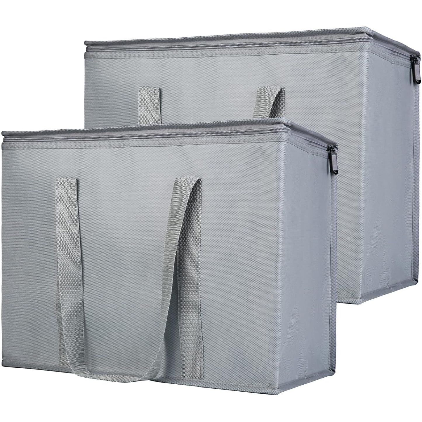 2Pack Grey Insulated Reusable Grocery Shopping Bags X-Large Picnic Cooler Bag Zipper Top Cold