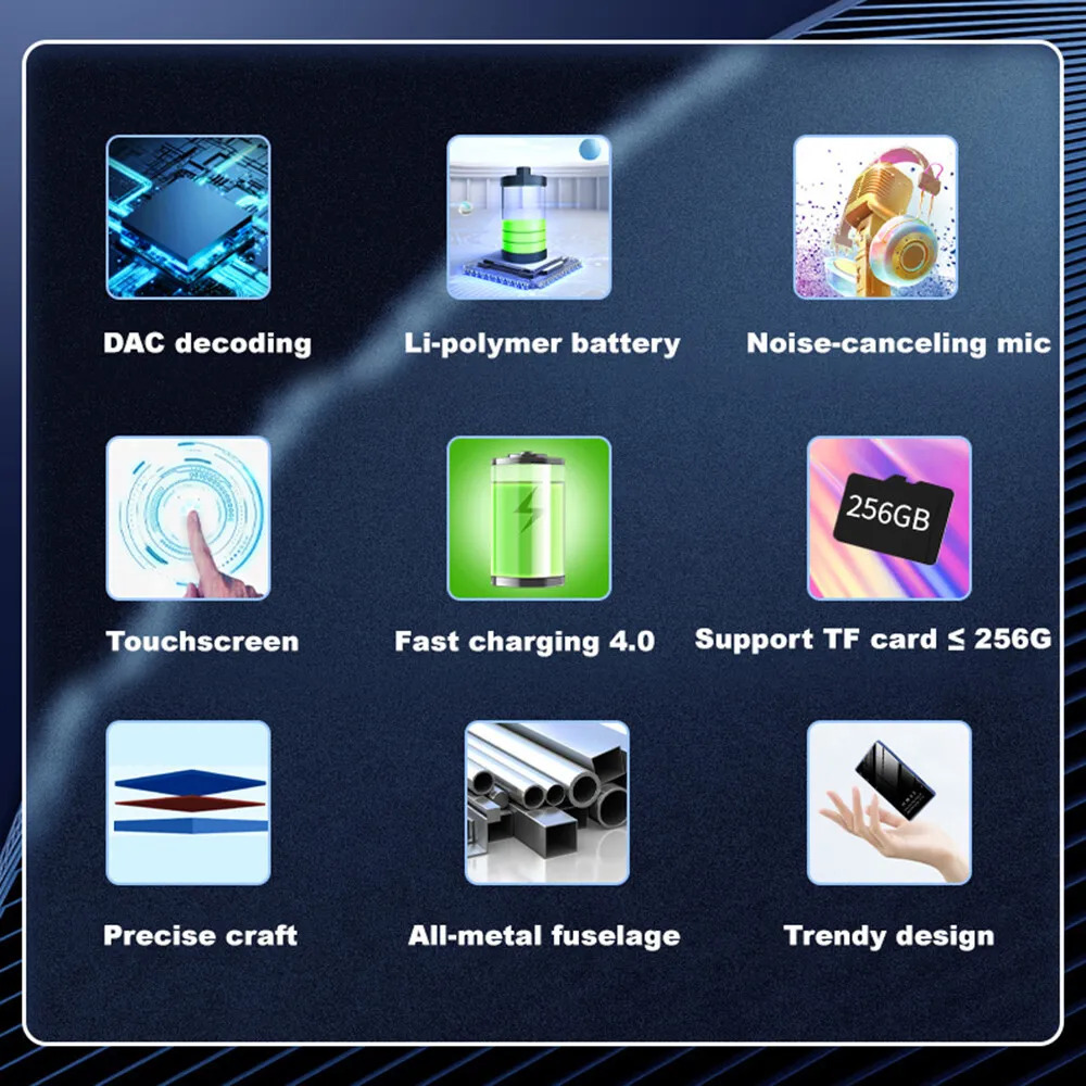 Upgrade your music journey with the 32GB MP3 Player, equipped with Bluetooth 5.0 and dual-band WiFi for seamless connectivity. Enjoy Spotify, Audible, Amazon Music, and more through the pre-installed Google suite on a vibrant 4-inch touchscreen. Supporting a multitude of audio formats, its 32GB storage, expandable to 128GB, ensures you never run out of space for your favourite tracks and videos. The high-definition display and powerful 8-core processor offer an outstanding viewing experience, while practical built-in apps, such as a voice recorder and FM radio, make it more than just a music player.