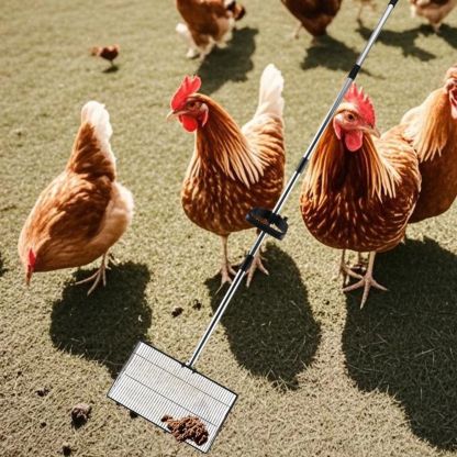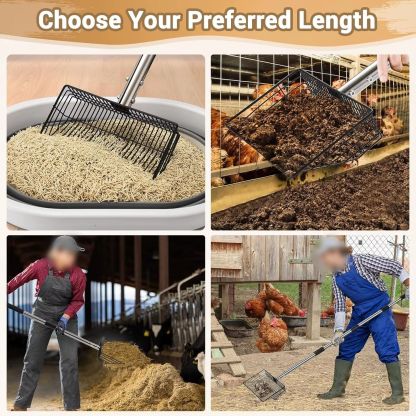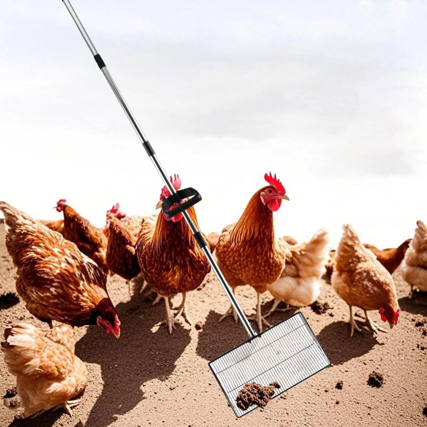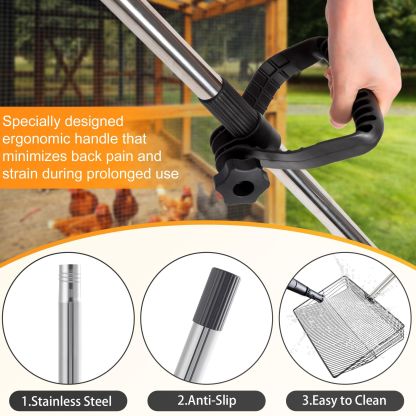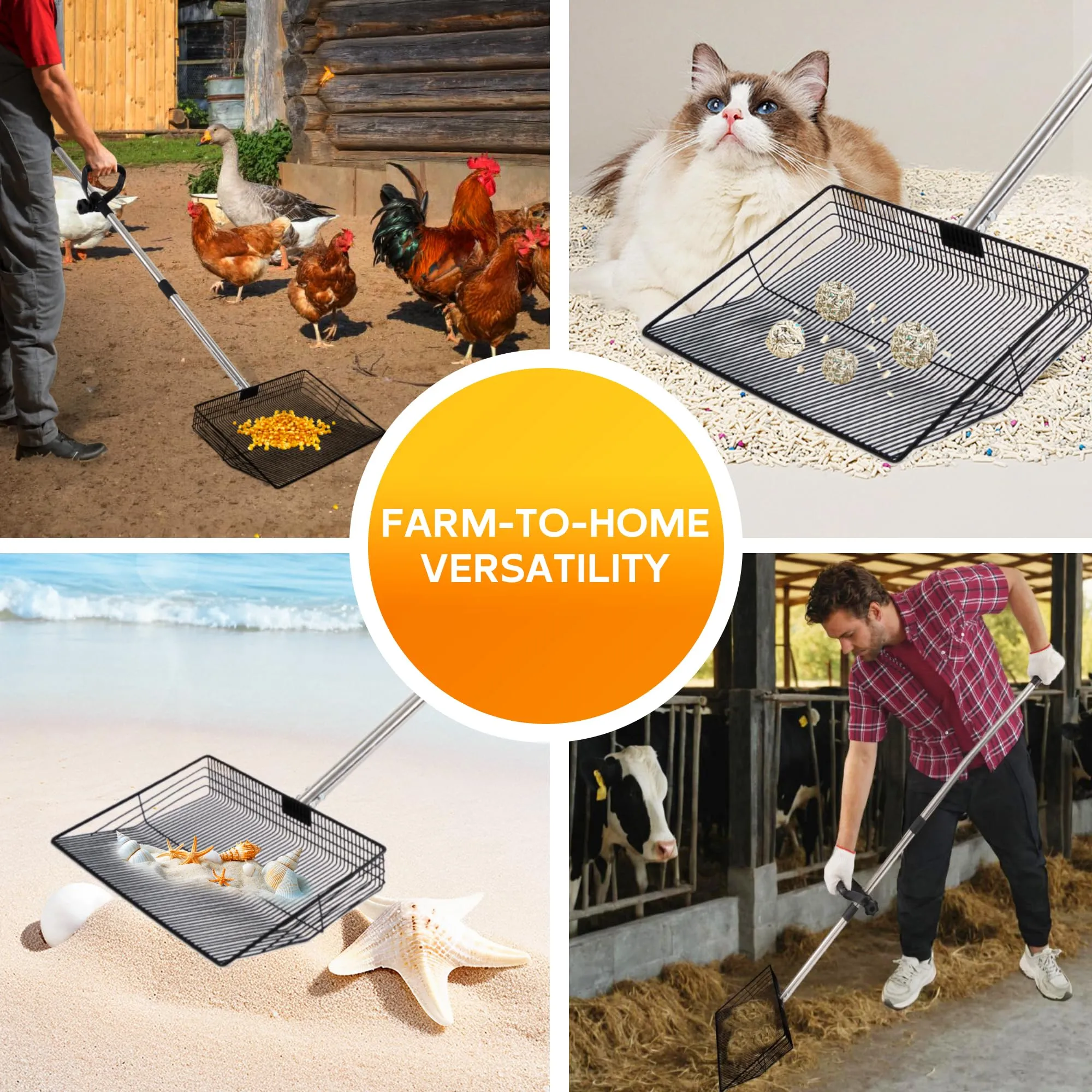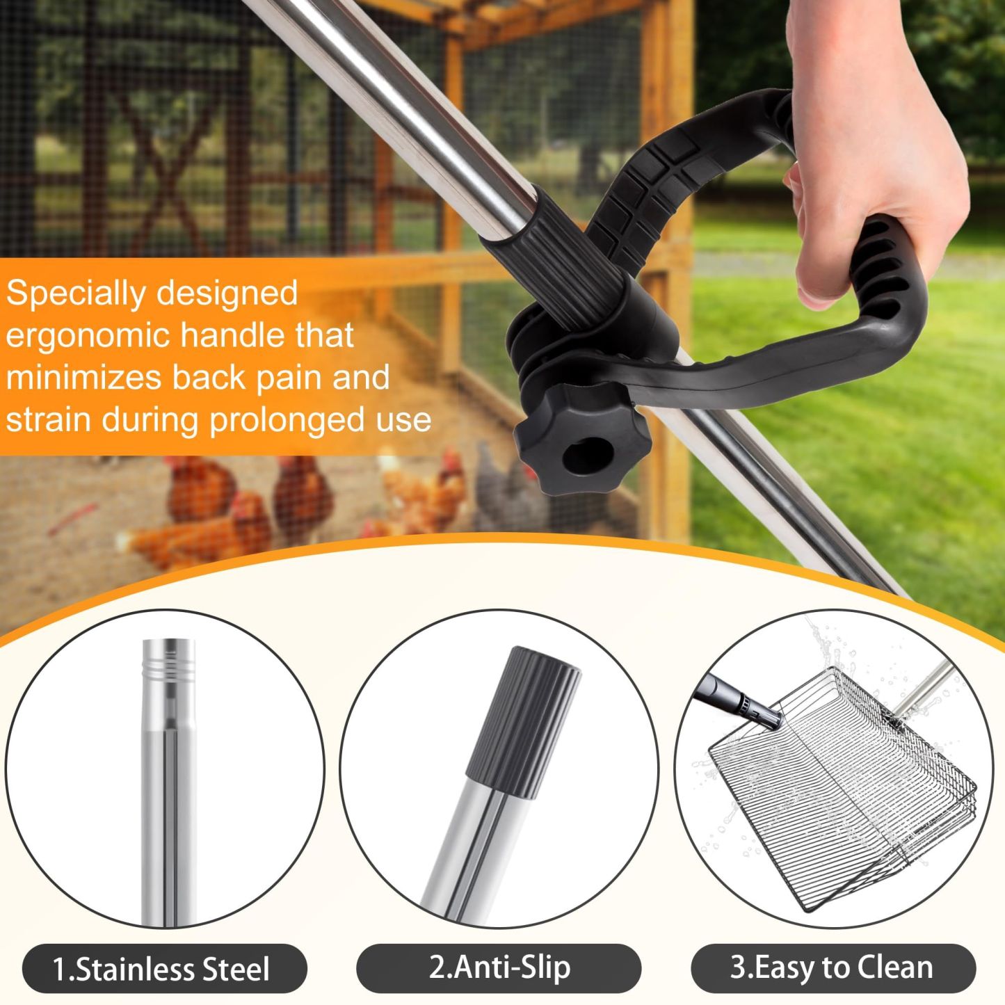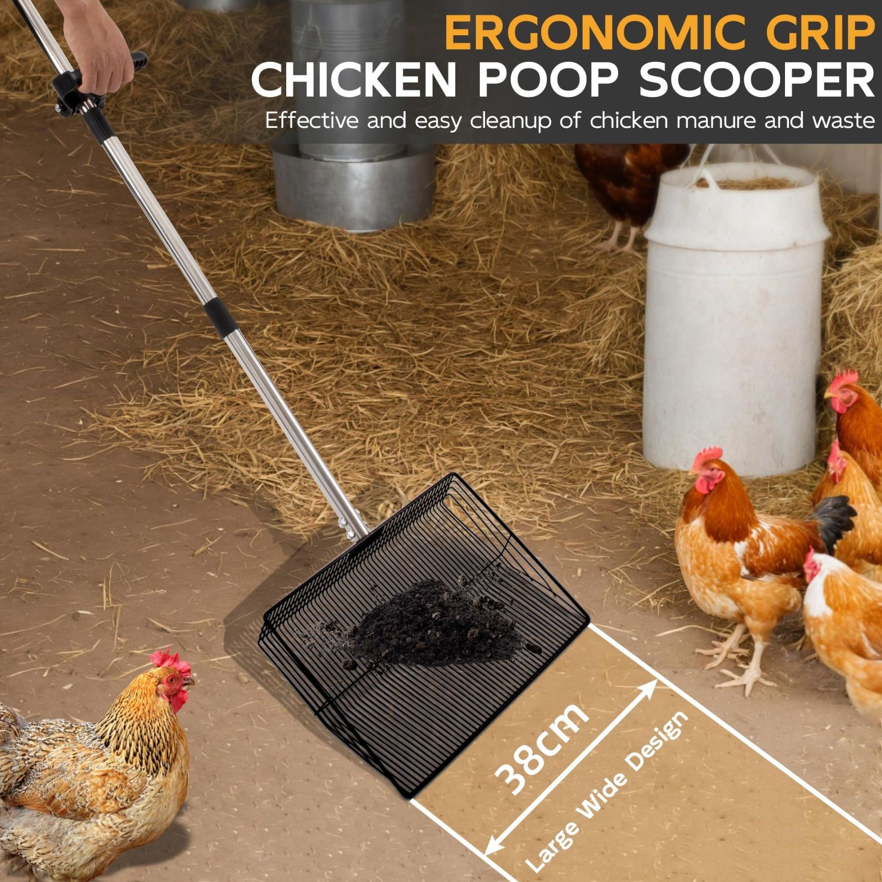 38CM Large Chicken Poop Scooper,110-176CM Long with Ergonomic Grip,Multifunctional Sand Sifting Scoop for Chicken Coop,Goat Run,Stable Cleaning