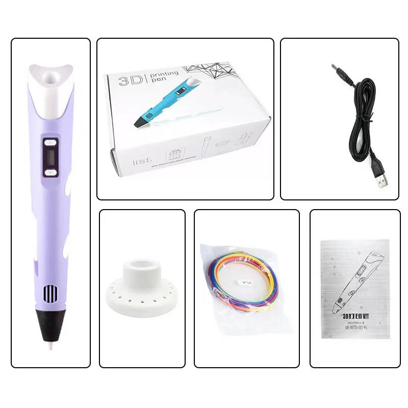 3D Printing Pen Display PLA Filament 3 Colours Starter Purple Creative Craft Drawing Art Tool Birthday Chrismtas Gifts for Kids Men Women