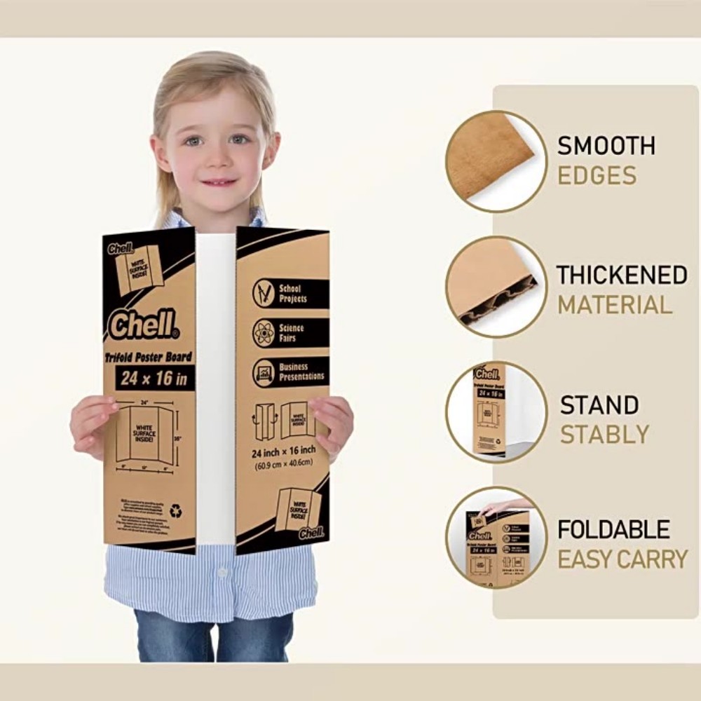 4 Pack Trifold Poster Board Set Kids White Corrugated Project Boards Science Fair School Projects Event Displays Business Presentations