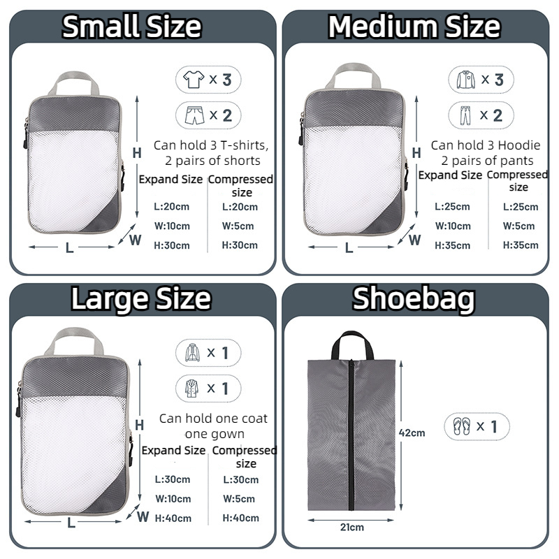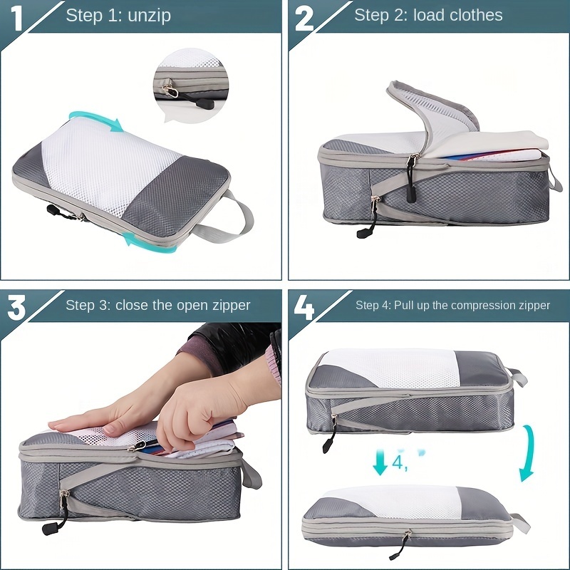 4 pcs Pack Travel Luggage Compression Bags - Lightweight, Dustproof, and Versatile Storage Organizers Color Sky Blue