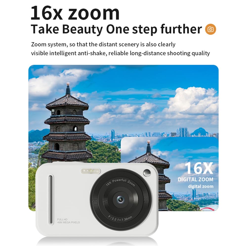 Digital Camera, Autofocus 48MP FHD 1080P Camera for Kids with 16X Zoom Anti Shake, Compact Portable Small Point and Shoot Digital Cameras with 32GB Card, Gifts for Teens Kids Boys Girls, white