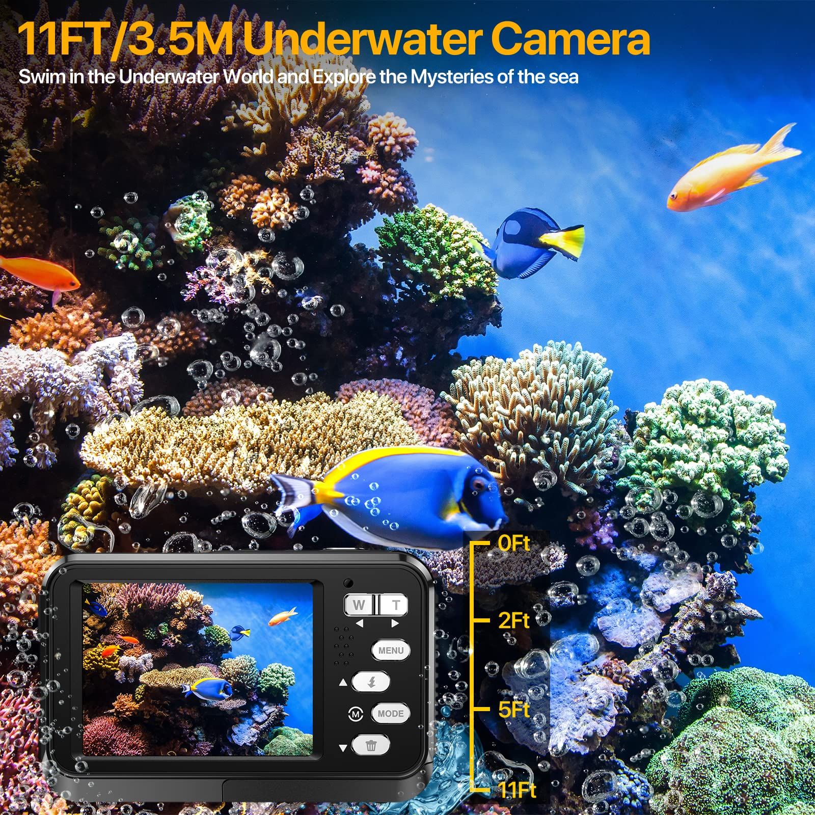 4K Camera Underwater Waterproof Selfie Dual Screen Snorkeling 48MP Autofocus 16X Zoom Portable 11FT Photography Adventure 2 Battery Black