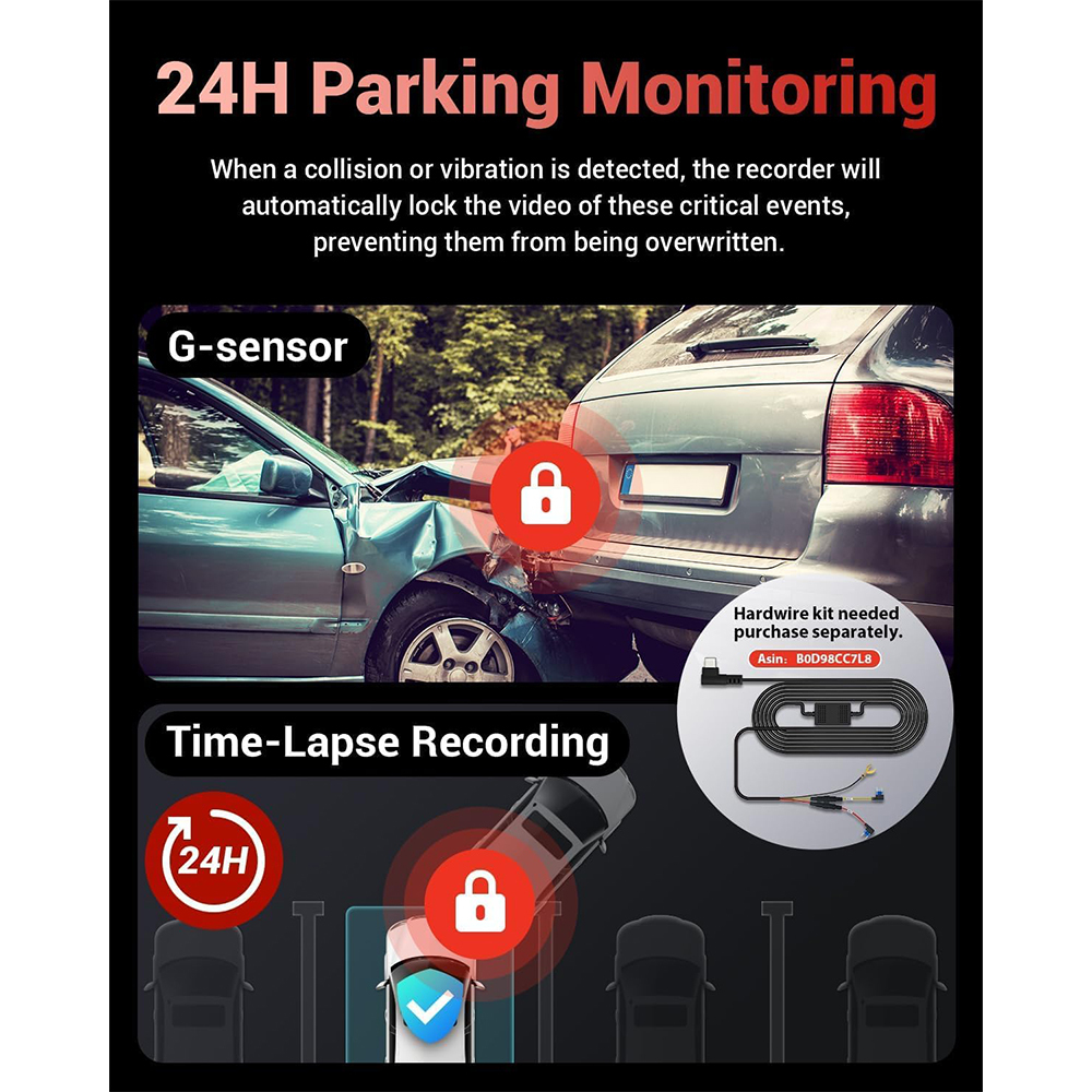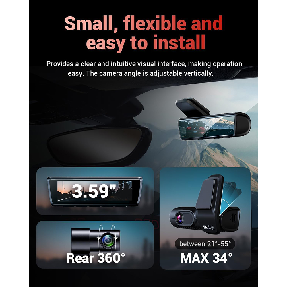4k Dash Cam Front and Rear, 3.59 Inch IPS Screen, Built in 5G WiFi Dash Camera for Cars with App