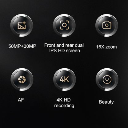 4K HD Dual Cam Dual IPS Screen Digital Camera, 16X Zoom Auto Focus Beauty Torch, Small Portable Digital Camera
