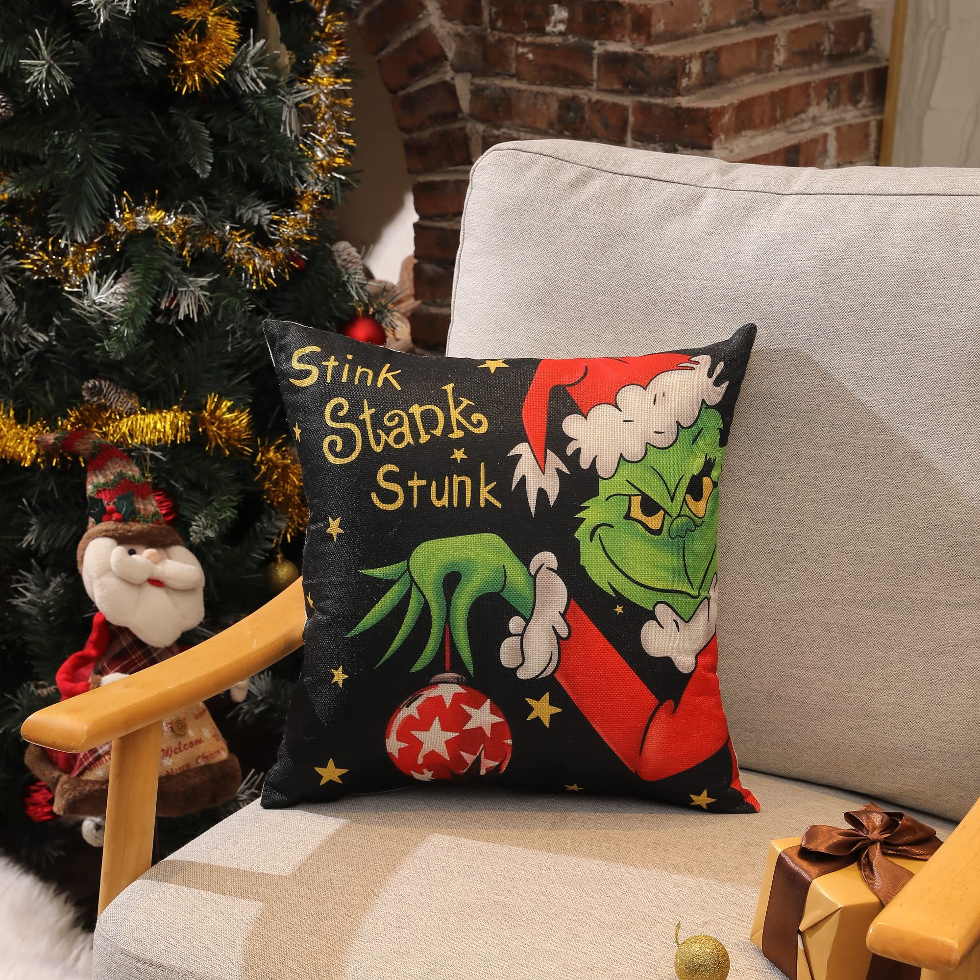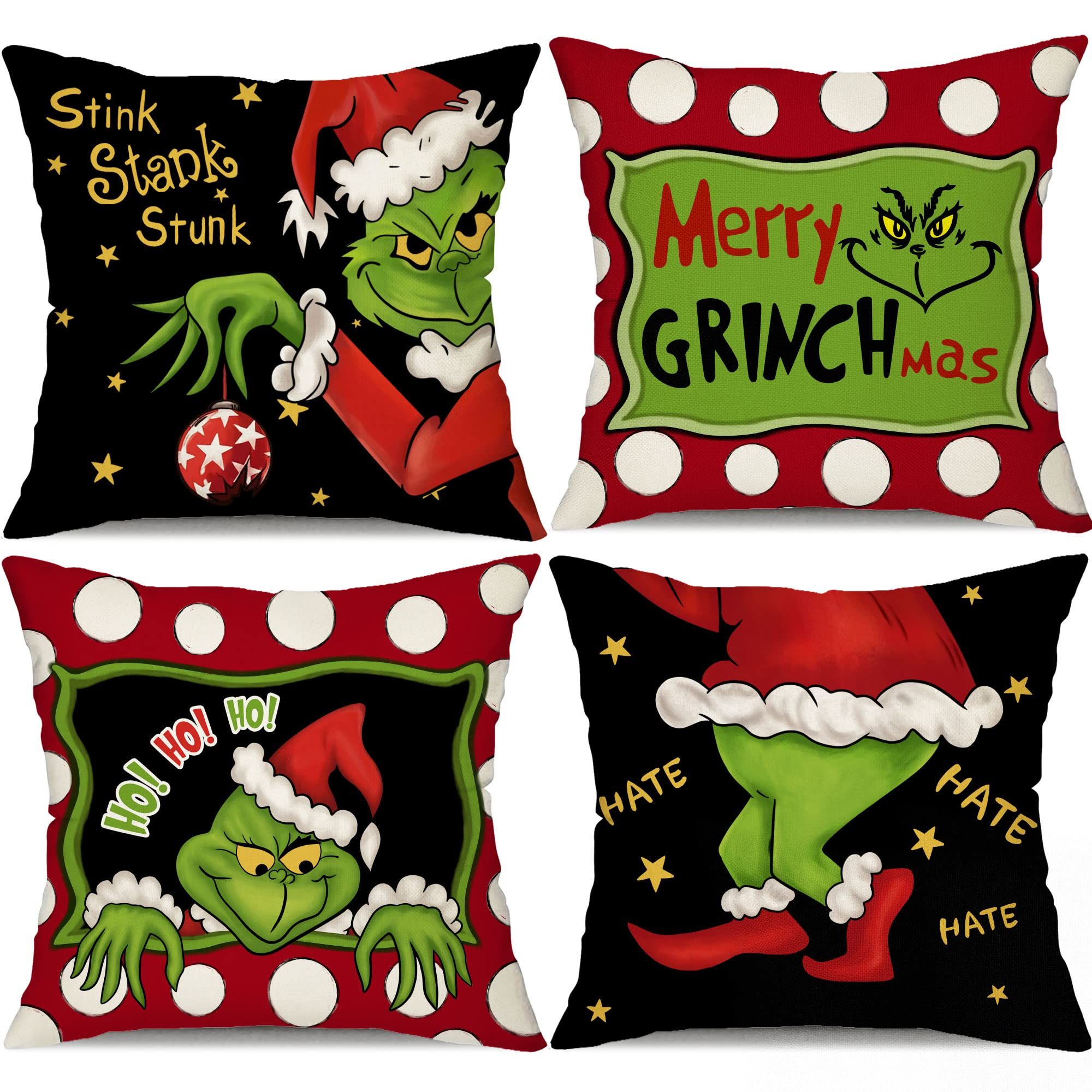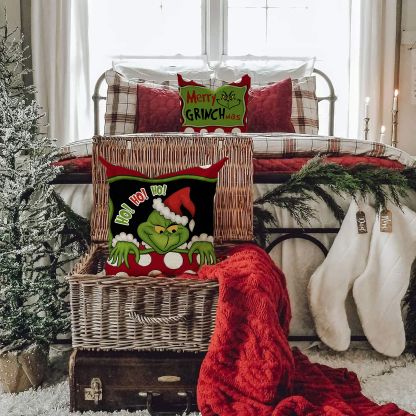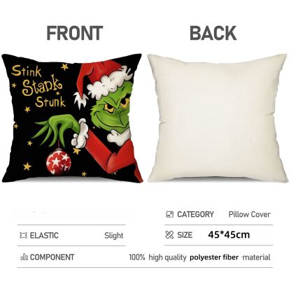 4pcs Christmas Grinch Decorative Throw Pillow Cover 45*45cm Merry Christmas Pillowcase Cushion Case Home Decoration