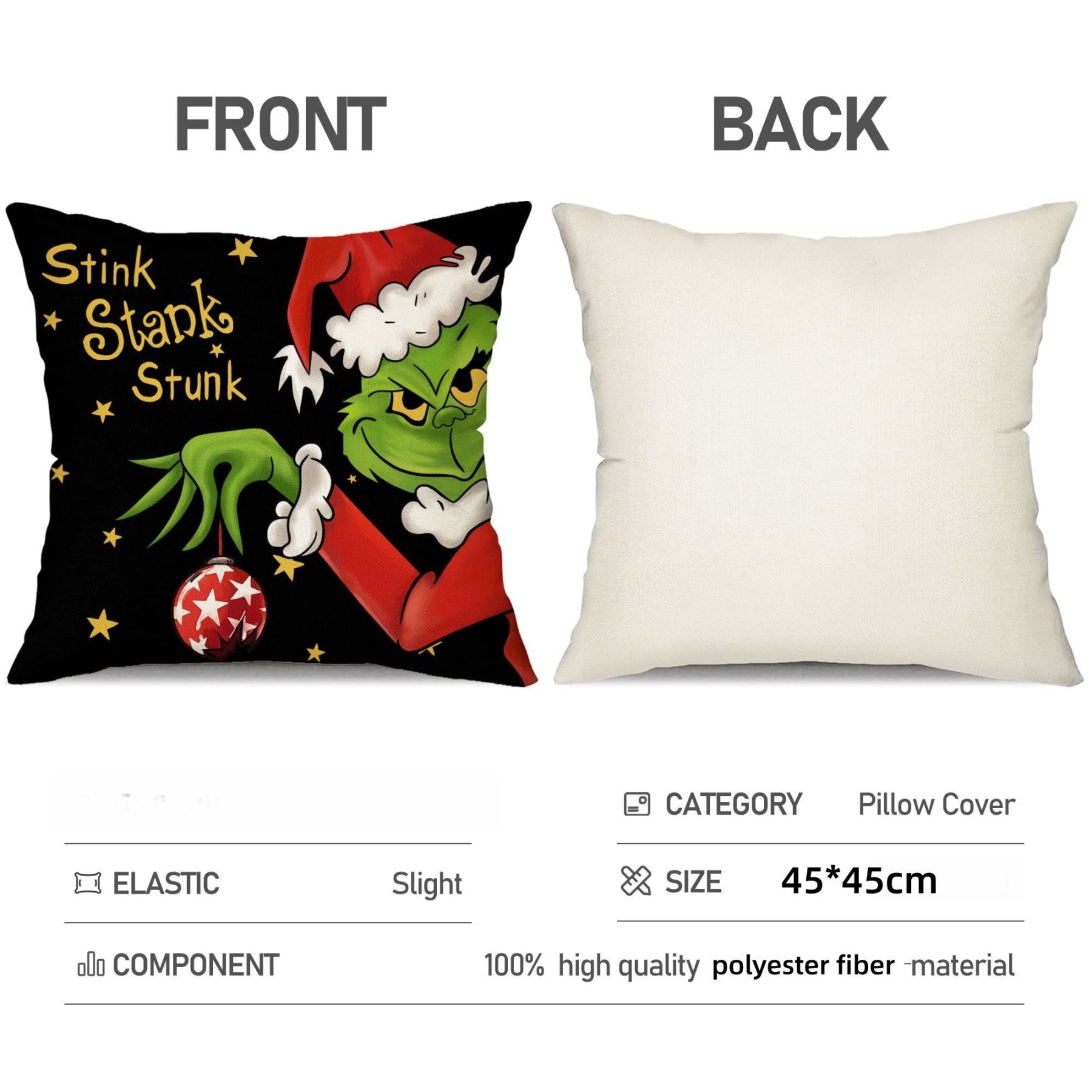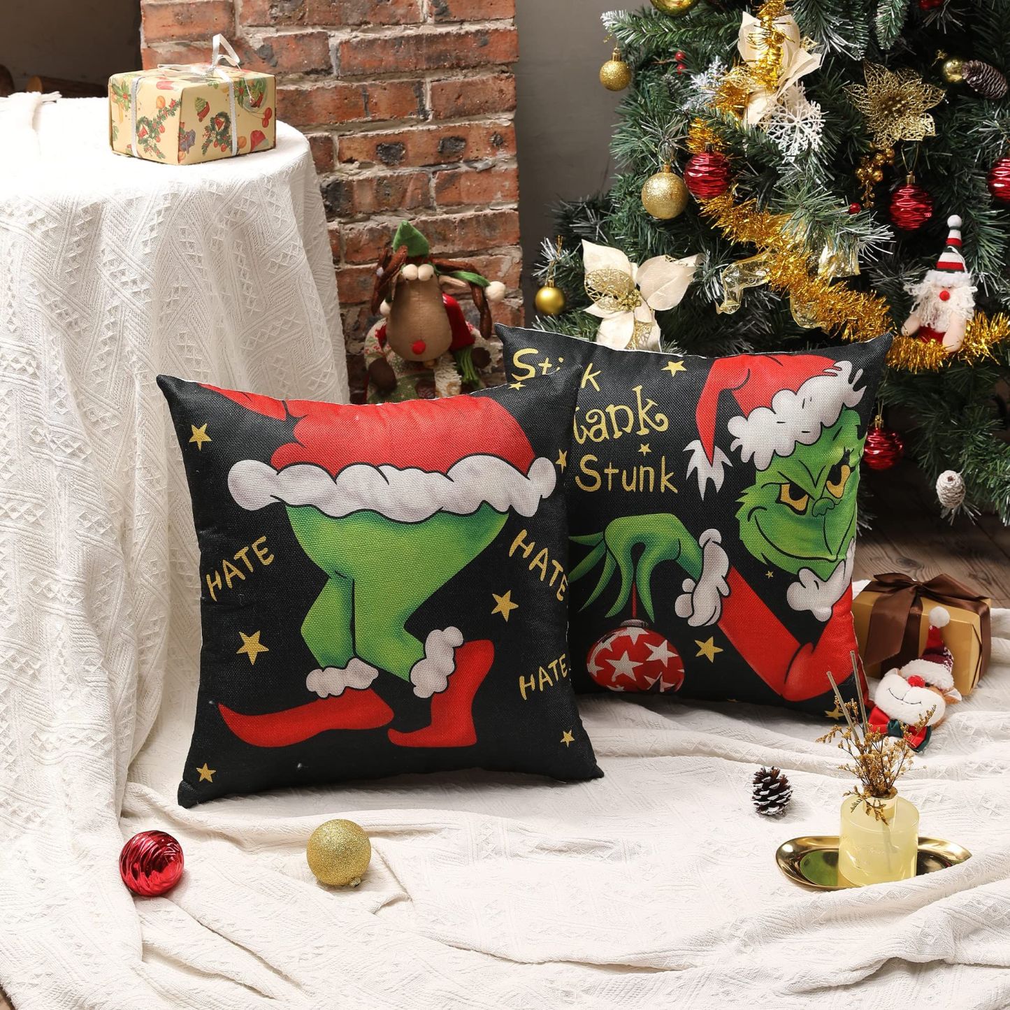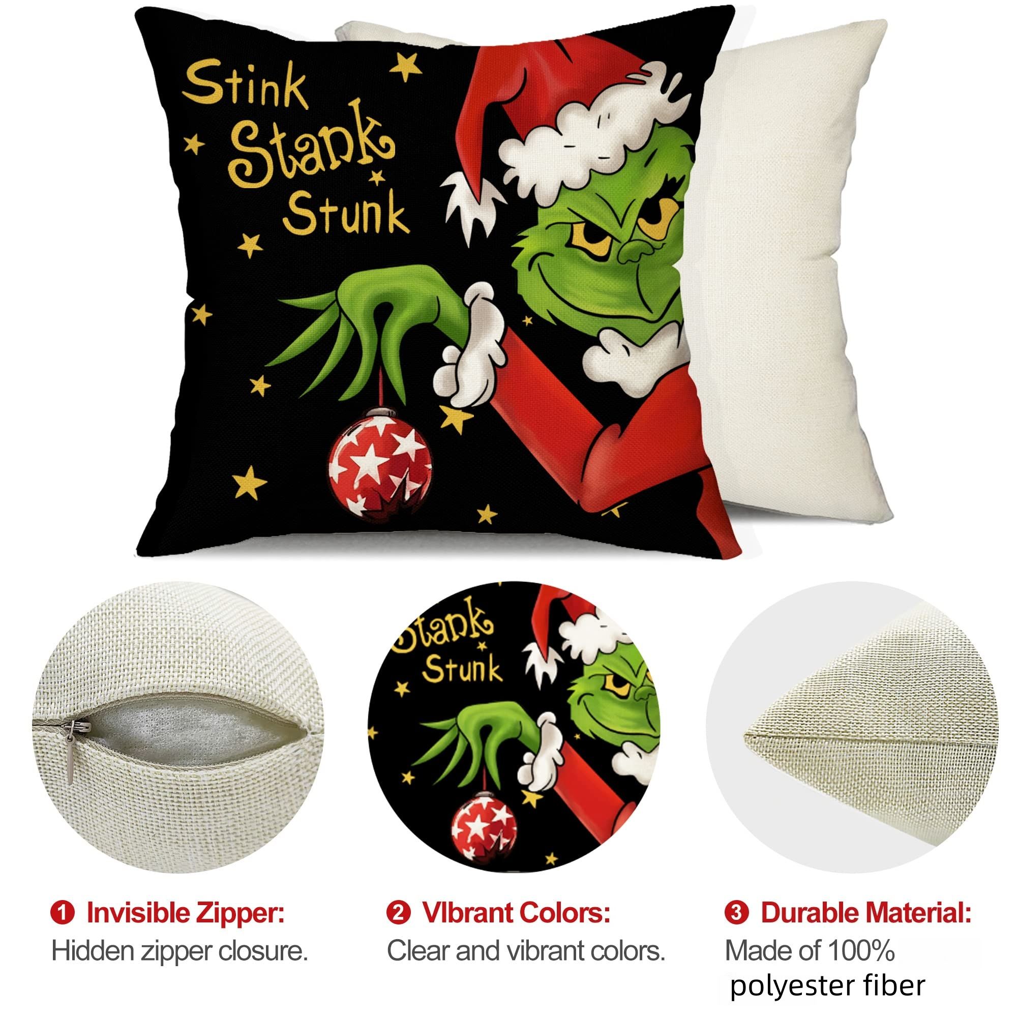 4pcs Christmas Grinch Decorative Throw Pillow Cover 45*45cm Merry Christmas Pillowcase Cushion Case Home Decoration
