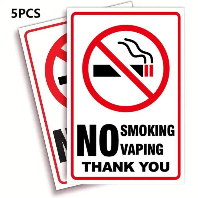 5 Pack No Smoking Vaping Sign Sticker UV Protected Indoor Outdoor Business Safety Signs