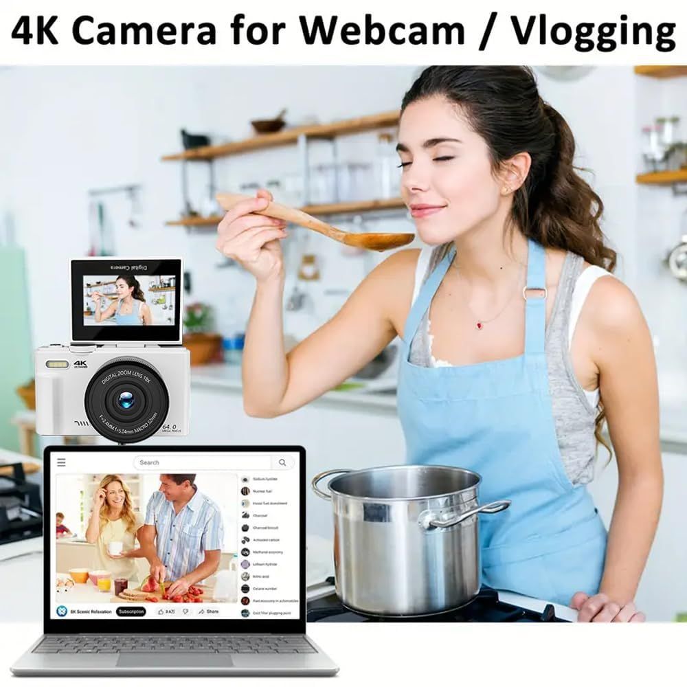 64MP Digital Camera Photography Video 4K YouTube Vlogging Cam 3Inch Flip Screen 32GB TF Card 16X Zoom White Christmas Birthday Gifts