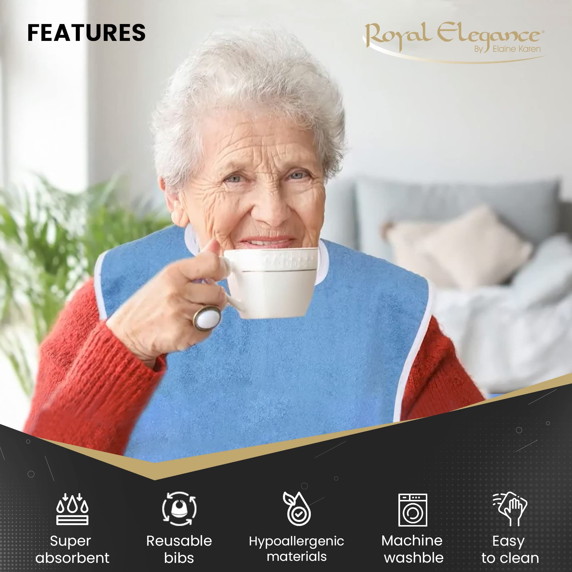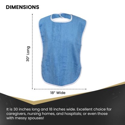 Adjustable Bibs for Men and Women Terry Clothing Protectors for Elderly Seniors and Disabled Machine Washable in Blue