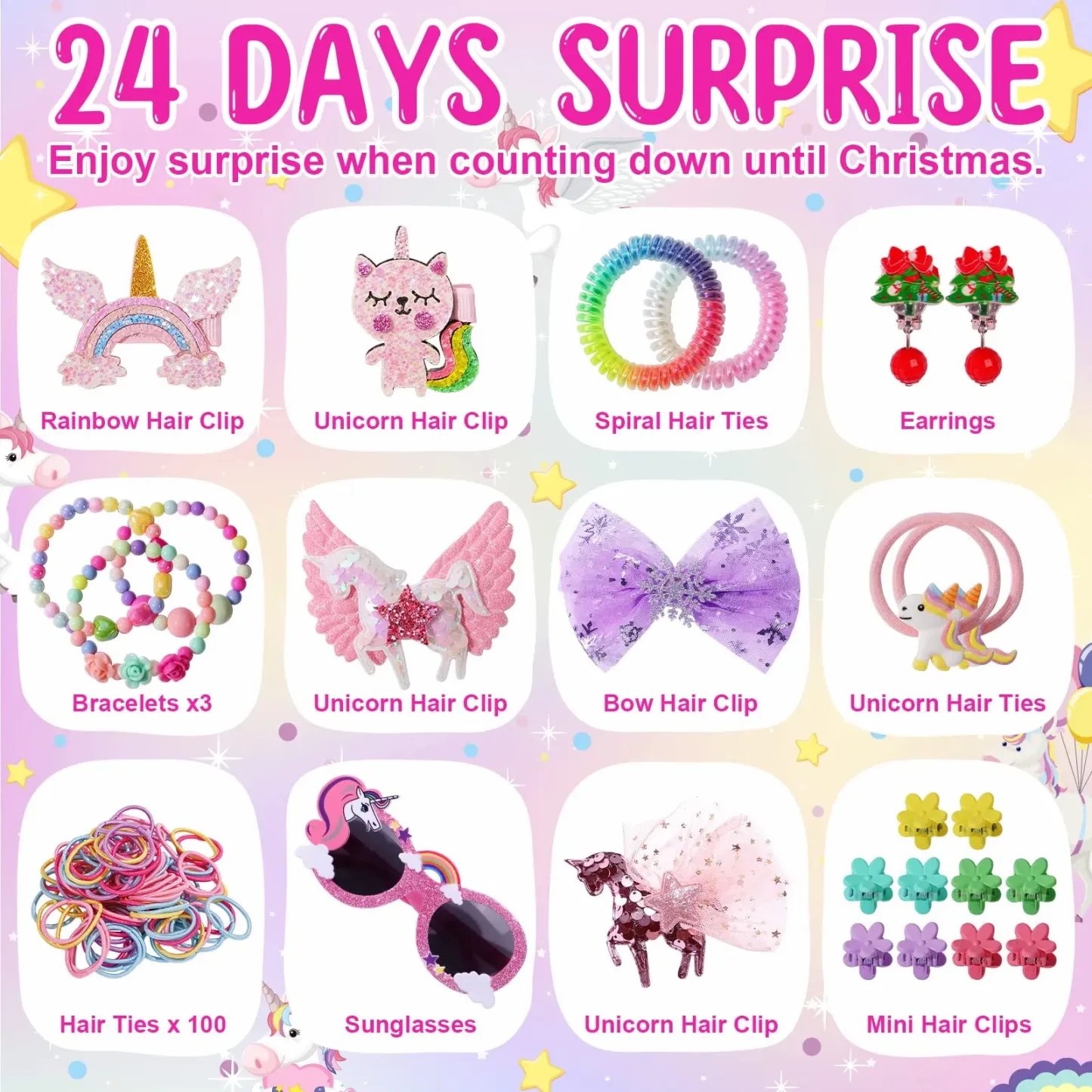 Advent Calendar Girls - Unicorns Gifts for Girls Christmas Countdown Calendar 24 Days of Xmas Jewelry Advent Calendar Gifts for Kids