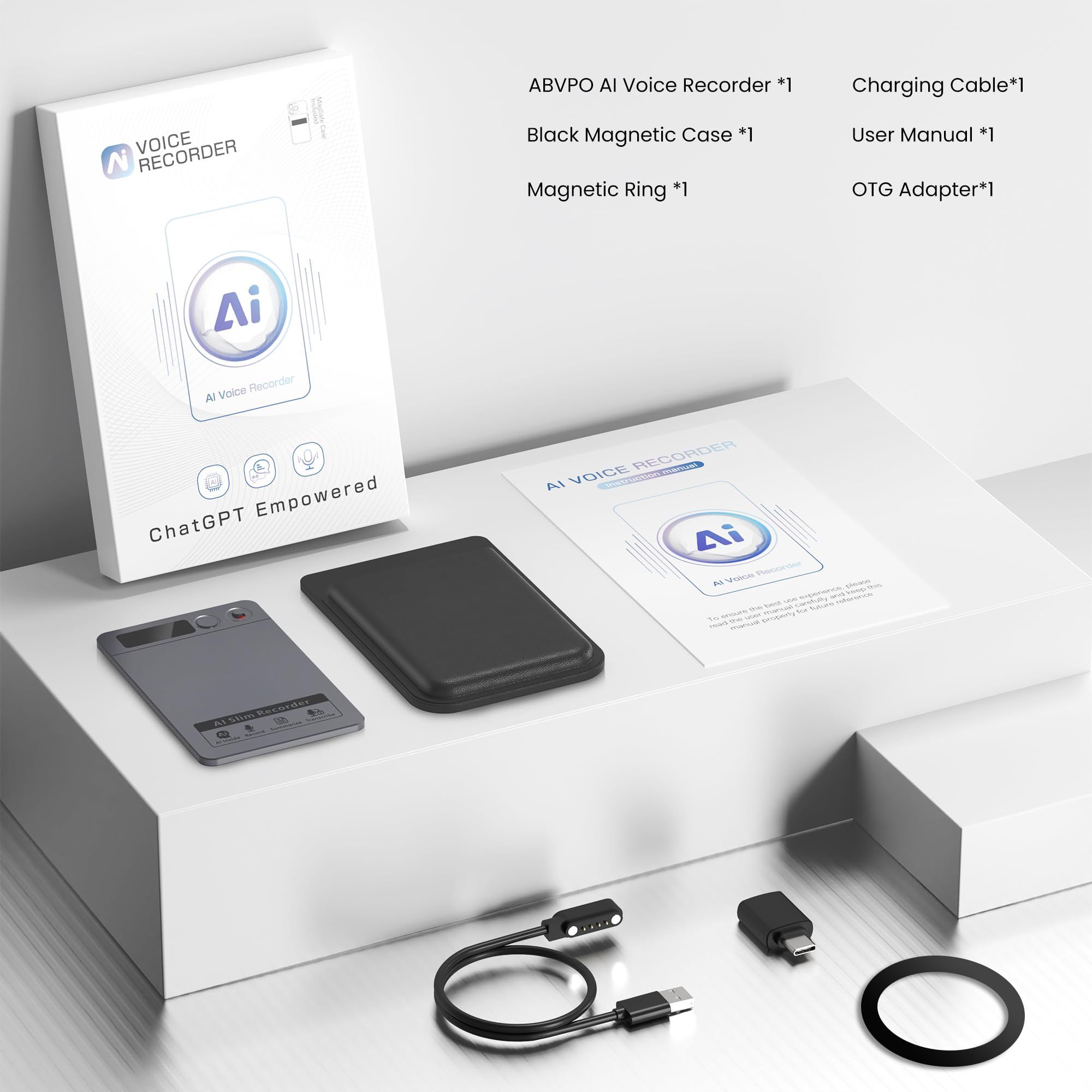 AI Voice Recorder,Note Voice Recorder Transcribe & Summarize,AI Noise Cancellation Technology,Supports 118 Languages,64GB Memory APP Control Audio Recorder
