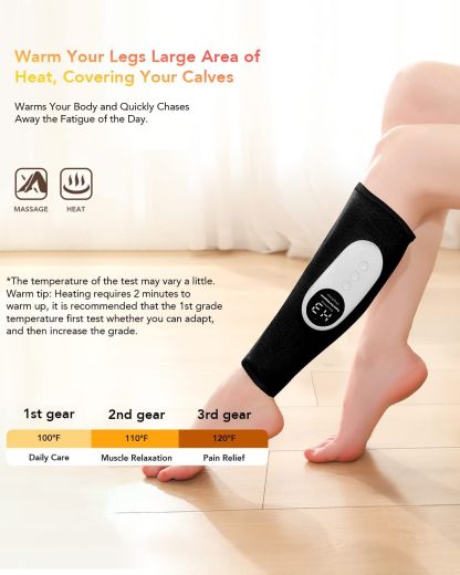 Air Compression Leg Massager Heat Circulation Relief Muscle Relaxation Easy Use Portable Gift 3 Modes Black Single