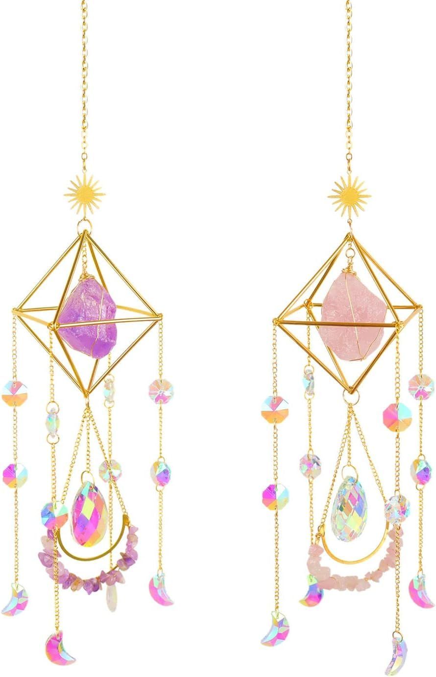 Amethyst Crystal Suncatcher - Hanging Gilded Garden Suncatcher for Window, Healed Amethyst Crystal Decoration for Home