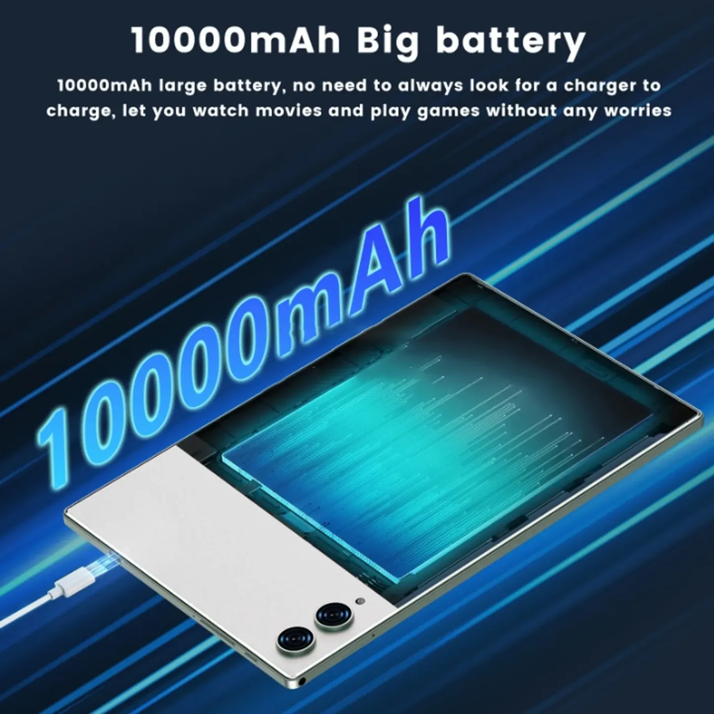 Android 15 Tablet 10.1 Inch 8 Core 8GB RAM 256GB ROM 10000mAh Battery HD Screen With Keyboard Color Blue