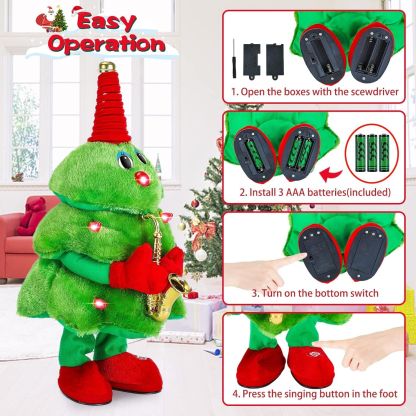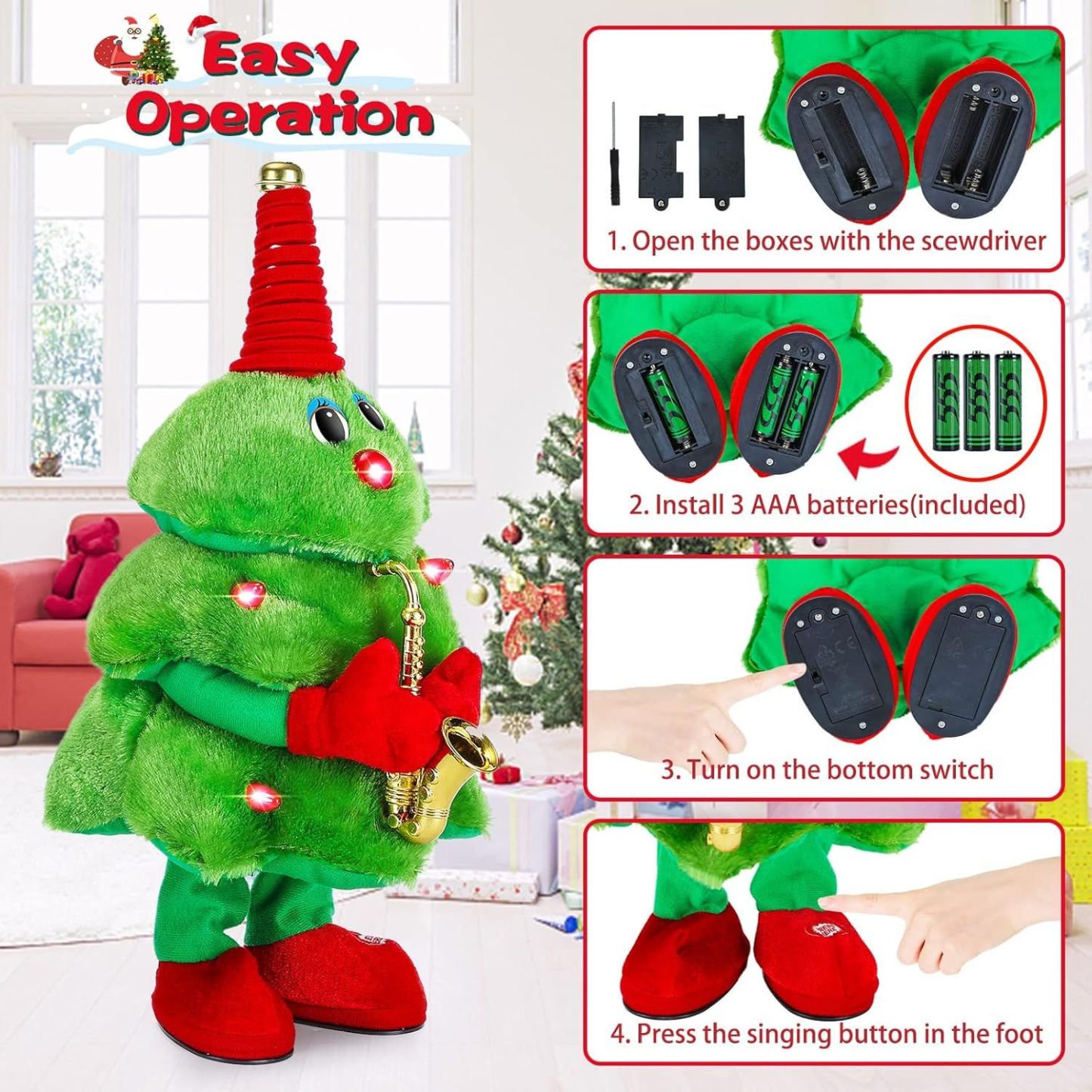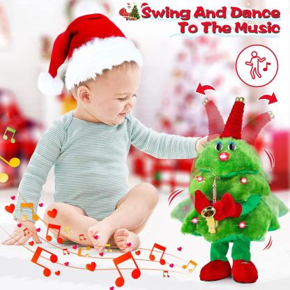 Animated Christmas Tree Singing Dancing Electric Plush Toy Lights Table Decorations Cute Funny Gifts Family Friends Entertainment