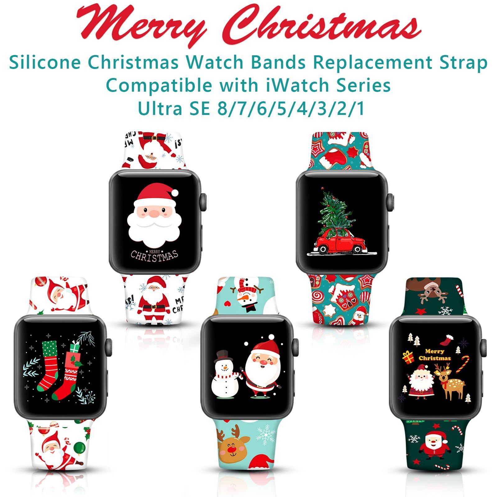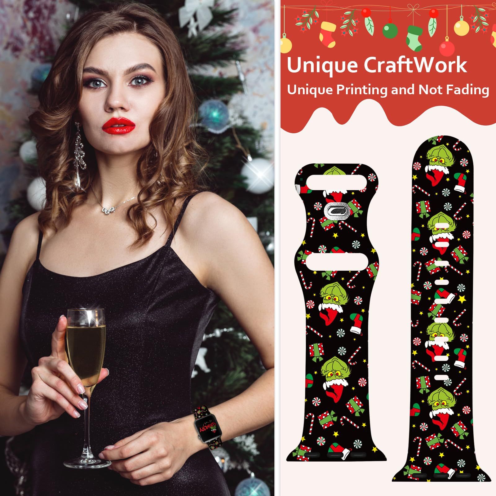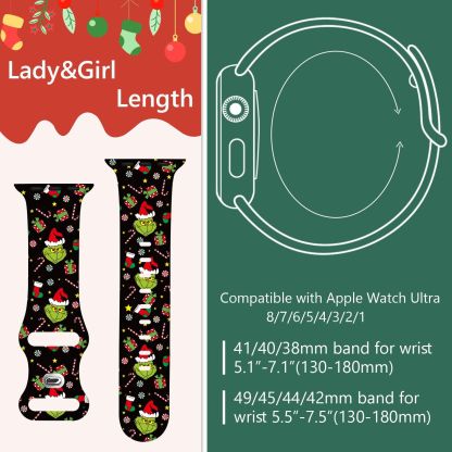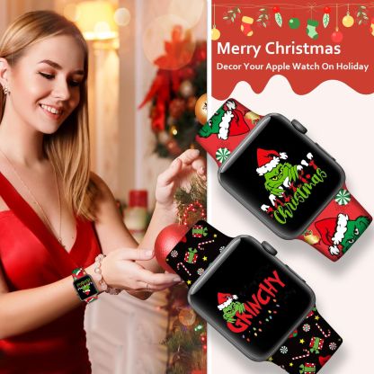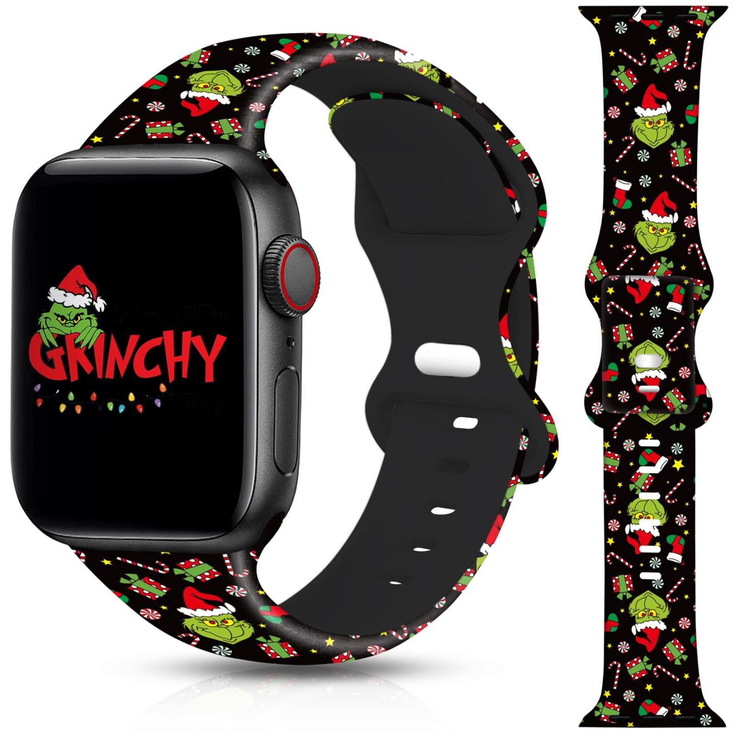 Apple Watch Band Christmas Grinch Compatible 42mm 44mm 45mm iWatch SE Series Soft Silicone Sport Replacement Strap Girls Festive Accessory