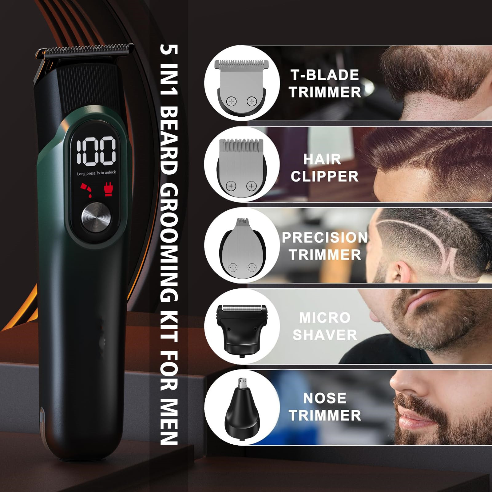 Beard Trimmer for Men Professional Electric Hair Clippers Razor for Nose Hair Trimmers for Barbers, Cutting Grooming Kit,Darkyan