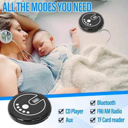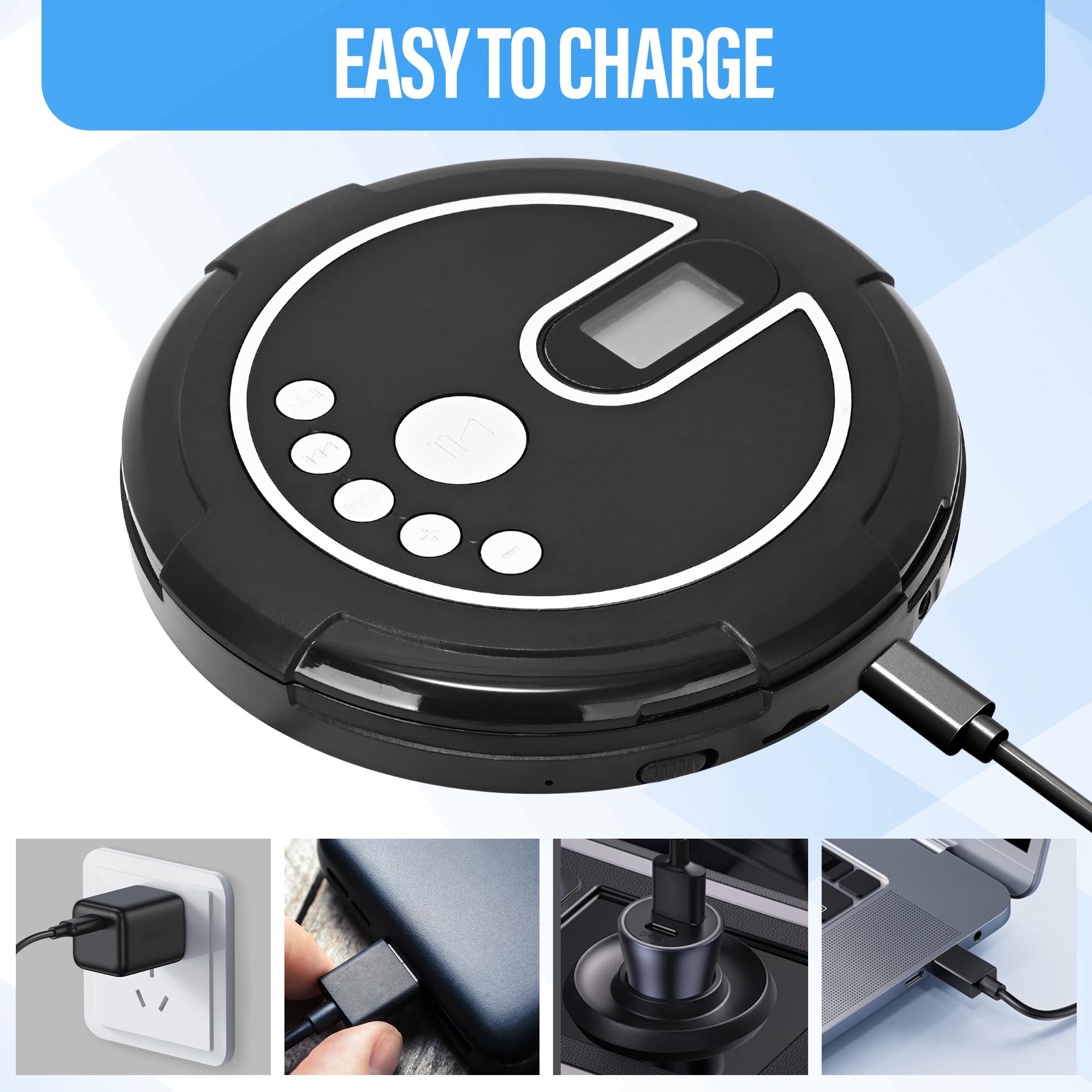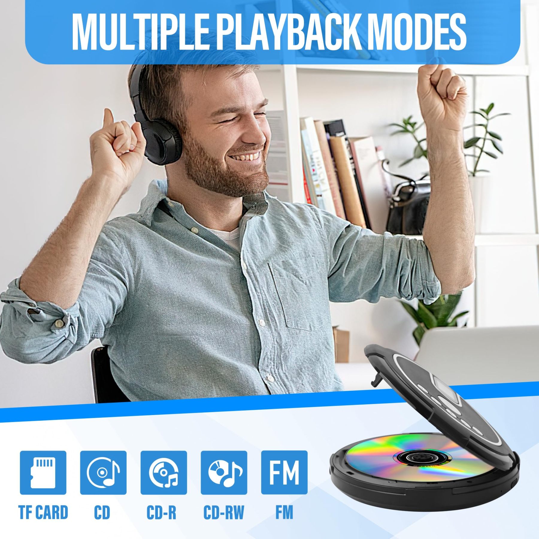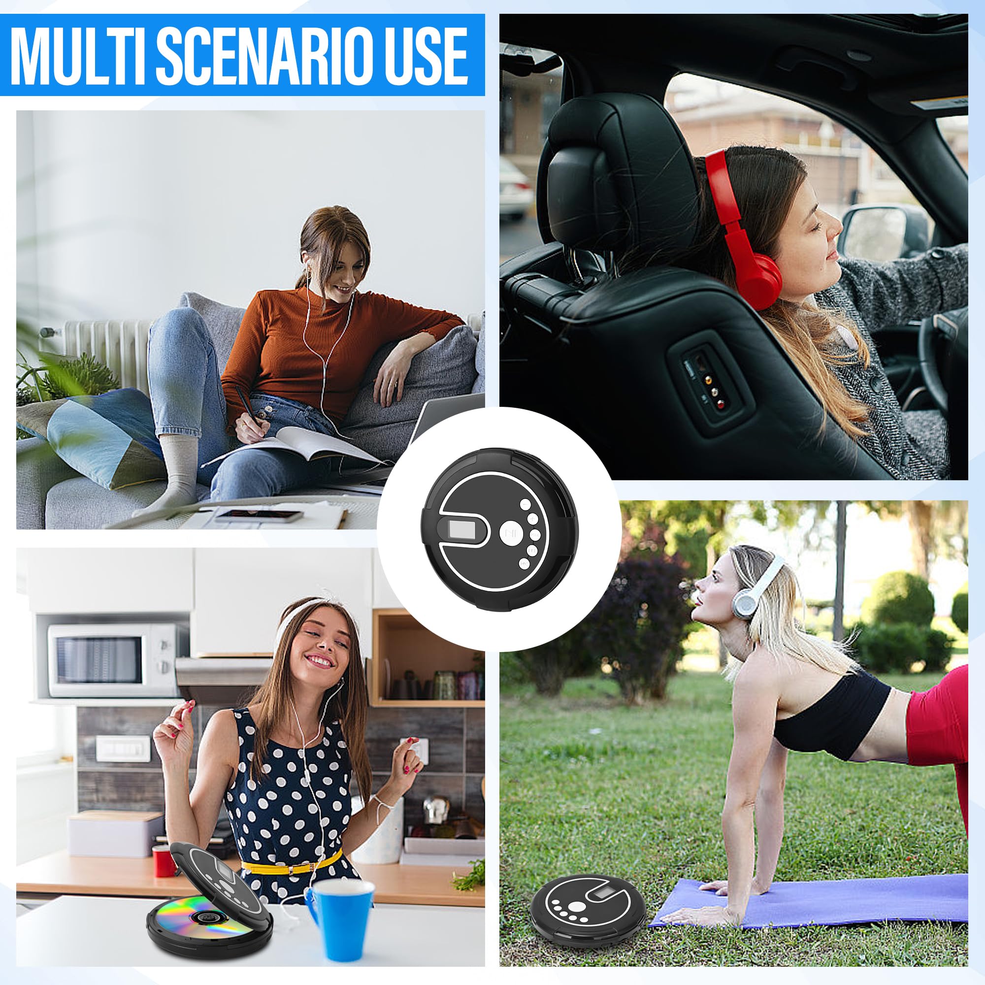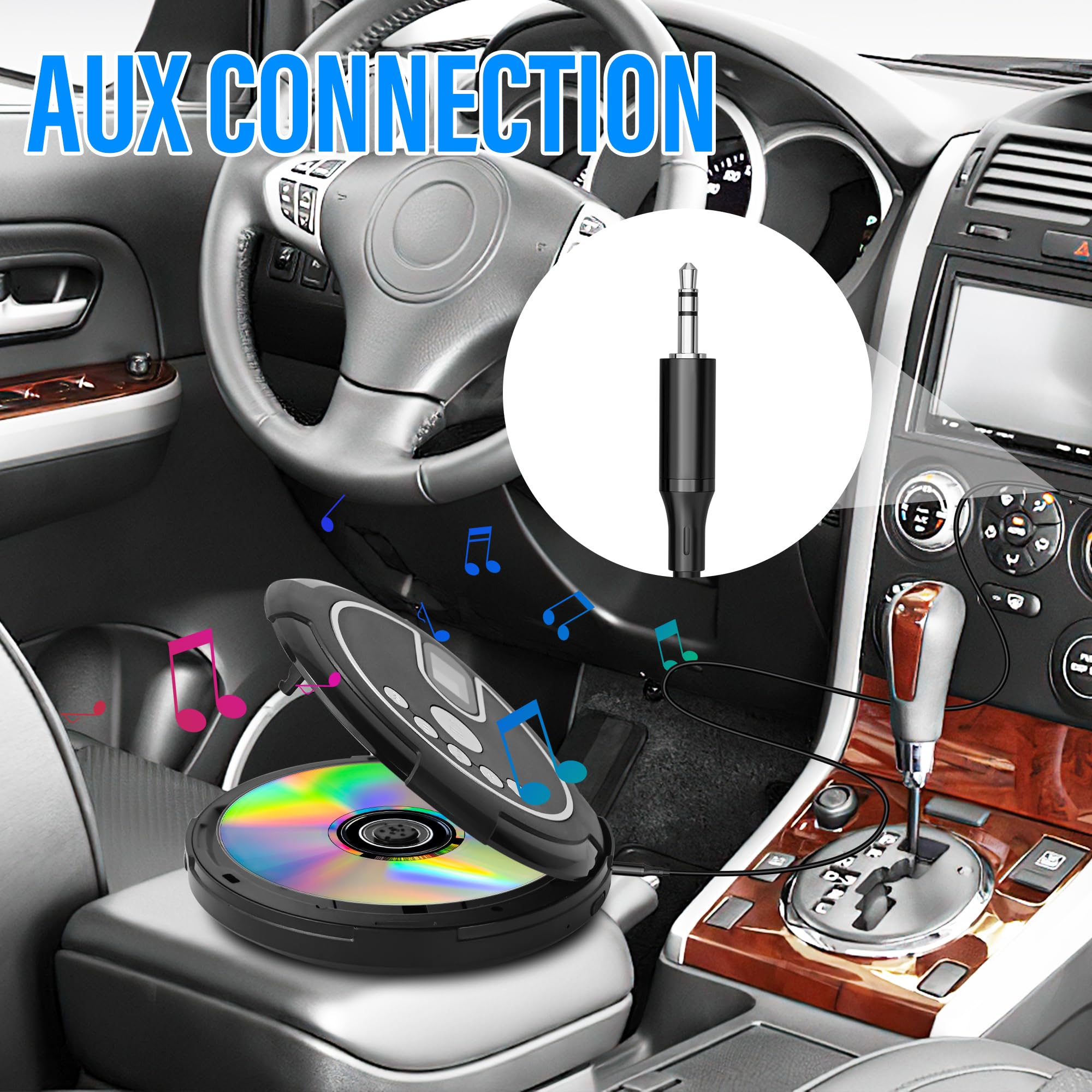 CD Player Portable Dual Stereo Speakers Rechargeable Walkman Anti Skip Discman Car Travel Music Audio Stereo Accessories