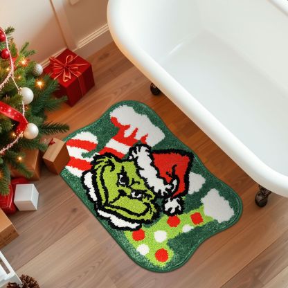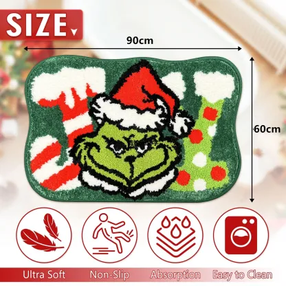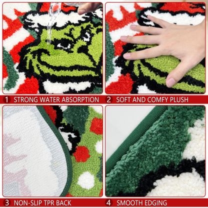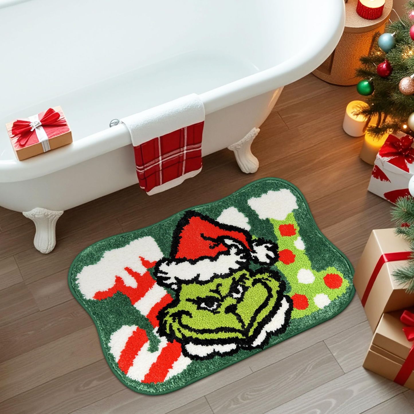 Christmas Bathroom Rugs, Green Christmas Rug for Bathroom Decor, Xmas Bath Mat, Soft Non Slip Washable Bath Rug(60*90 CM)
