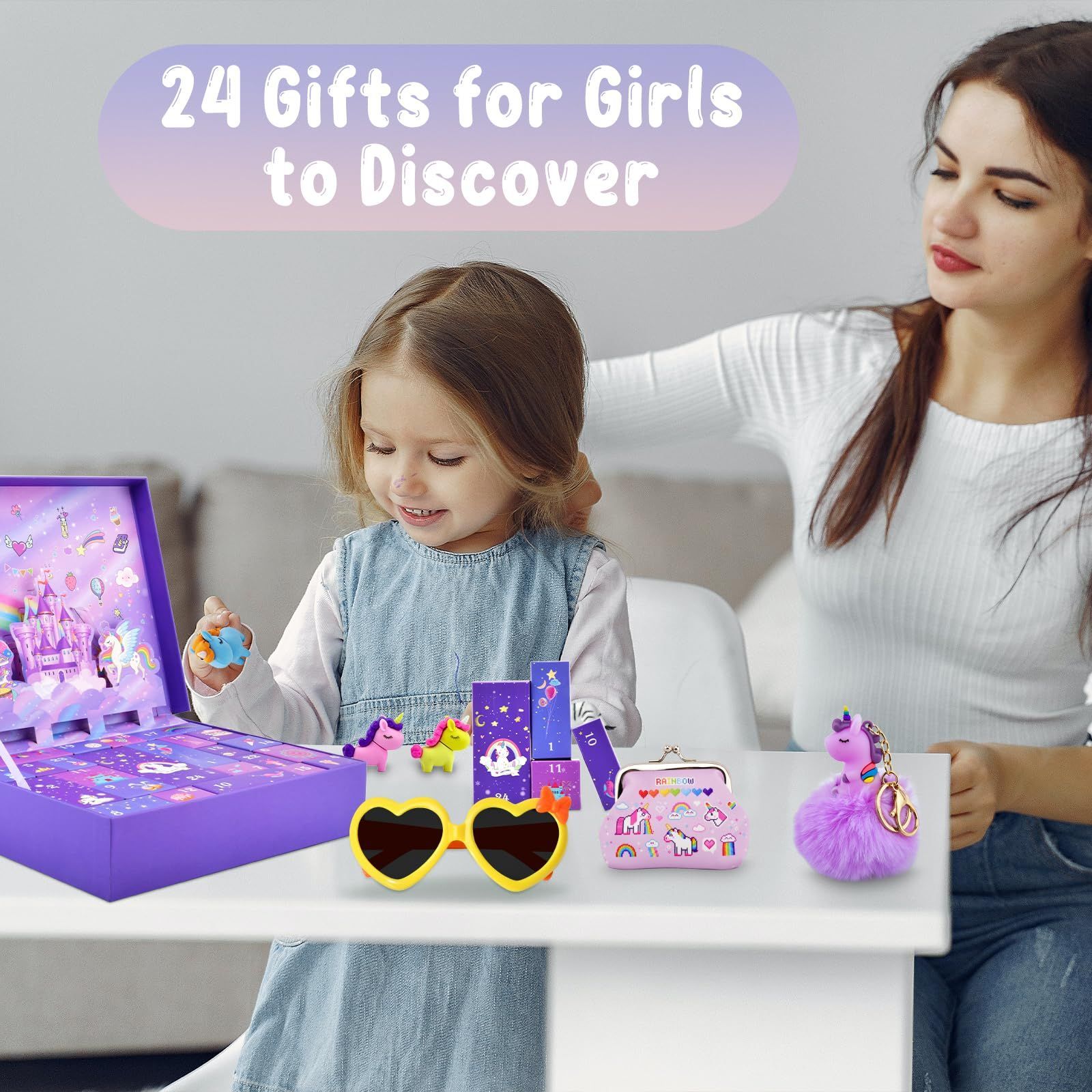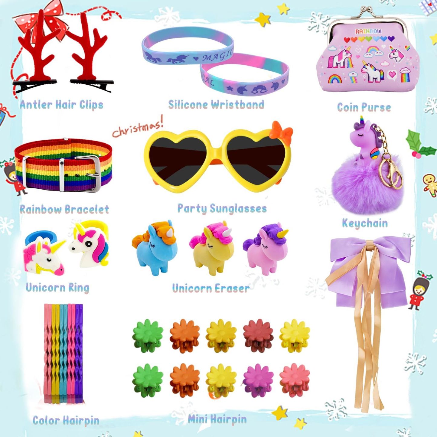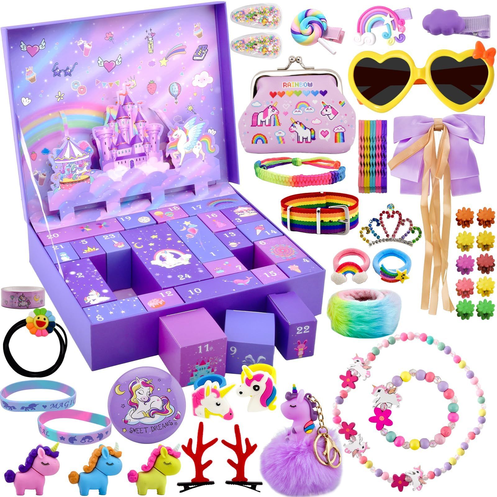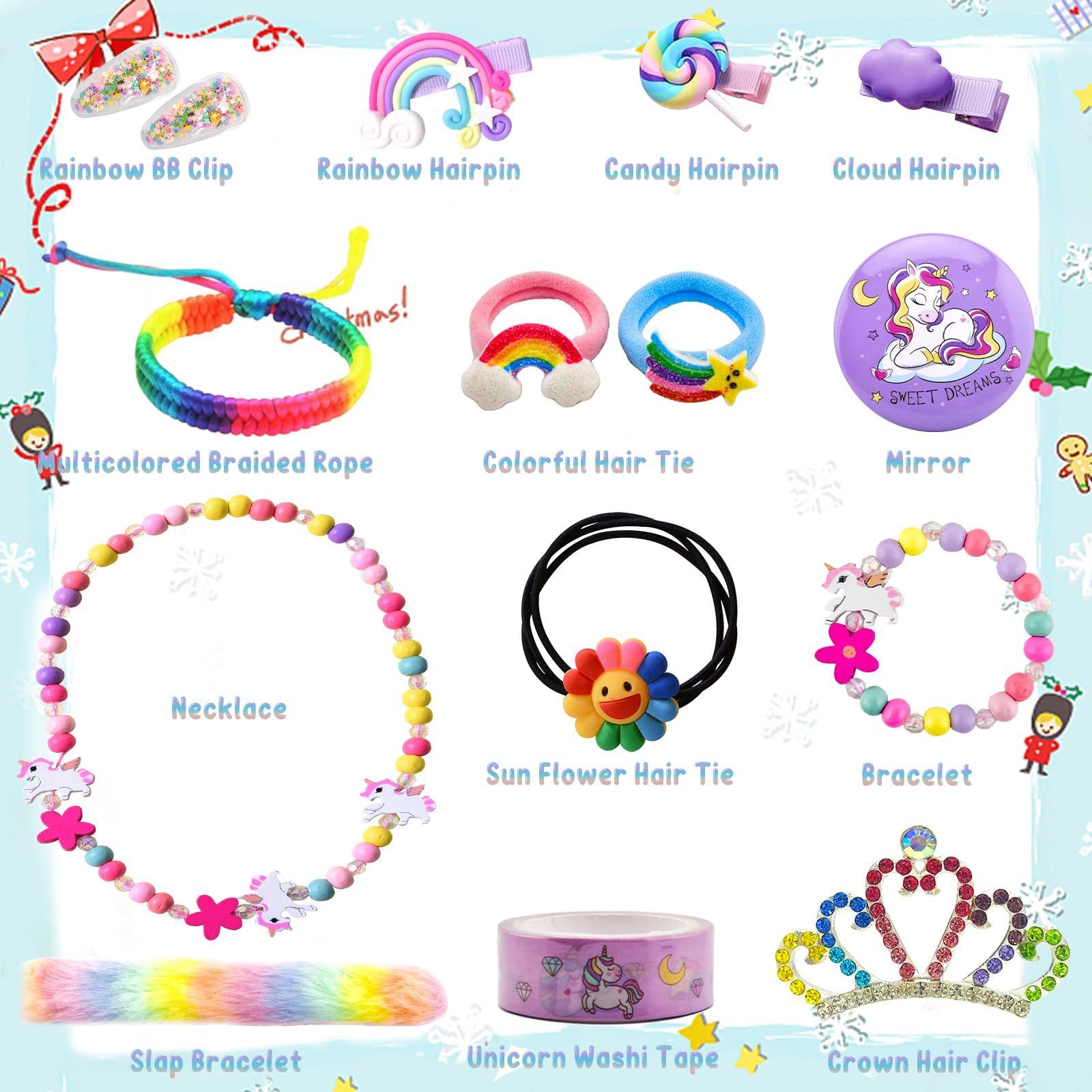 Christmas Countdown Advent Calendar, 24 Days Xmas Count Down Gifts Set for kids Toddlers, Including Hair Accessories, Jewelry, Hair Clips
