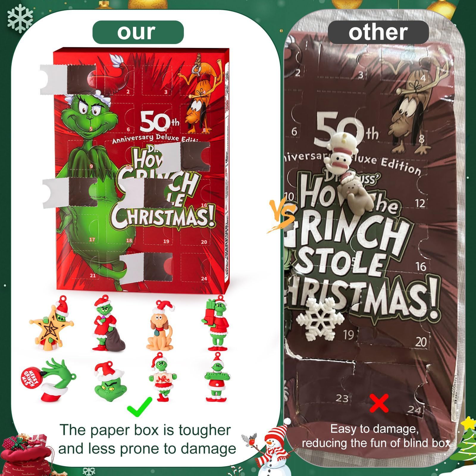 Christmas Grinch Advent Calendar 2026 Countdown Calendars 24 Days Hanging Pendant Xmas Surprises 24 Collectible toys