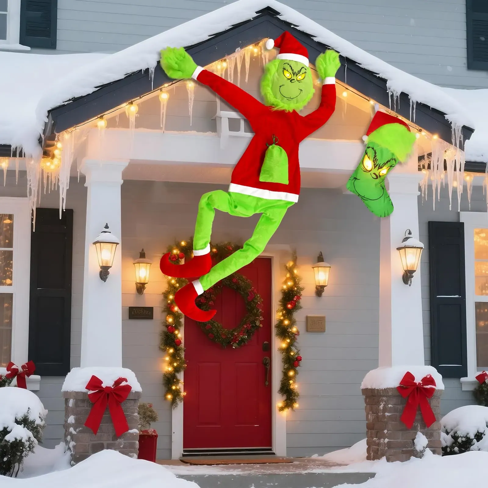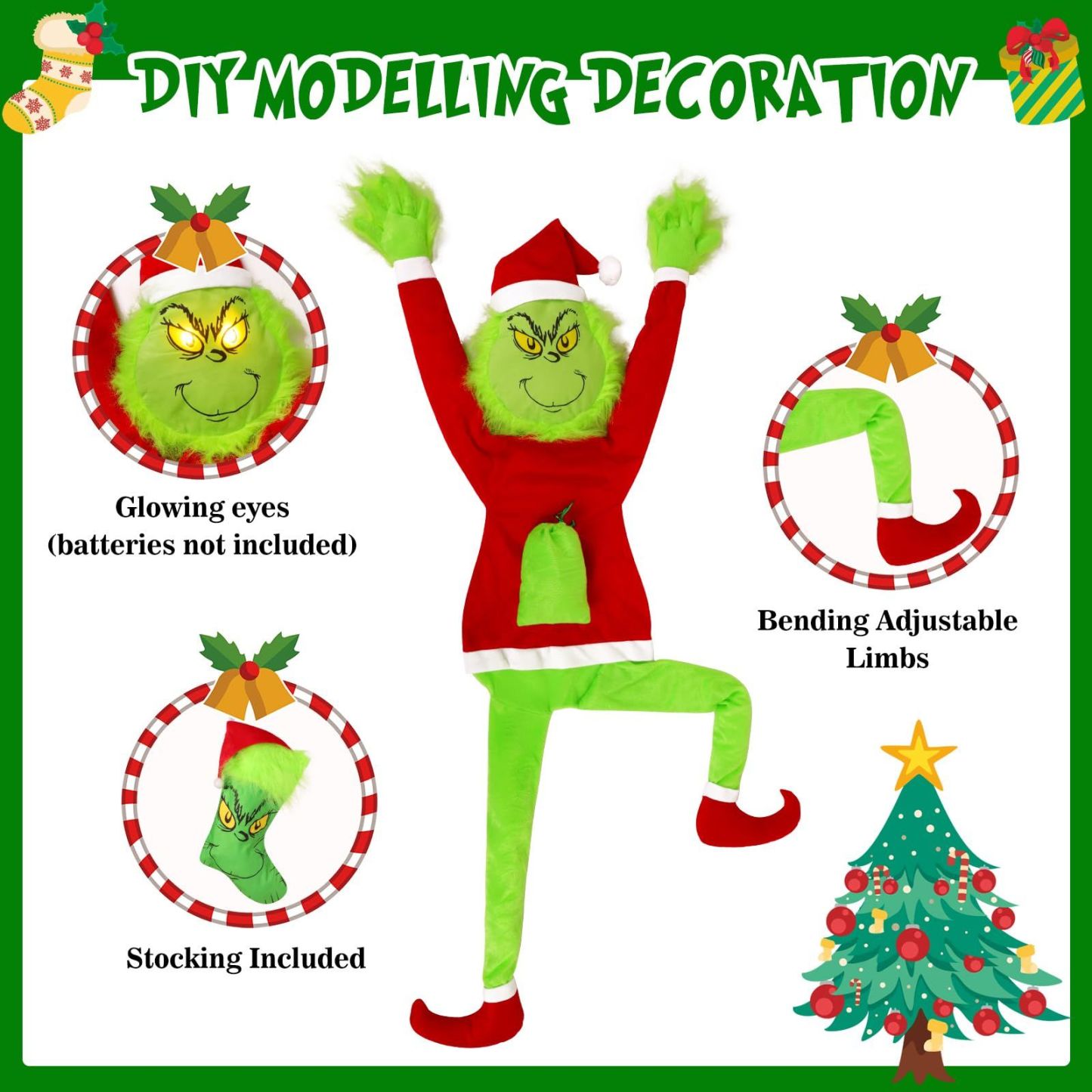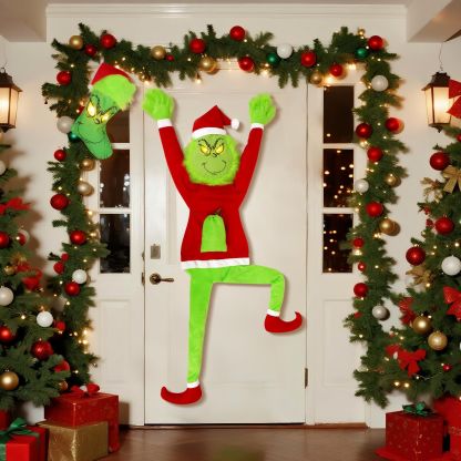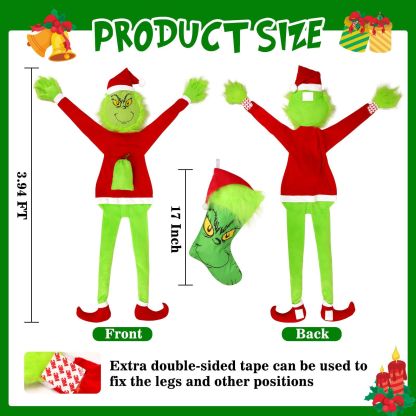 Christmas Grinchs Decorations,120cm Large Green Christmas Funny Doll with Stocking,Bendable Arms & Legs,Whimsical Plush Decoration