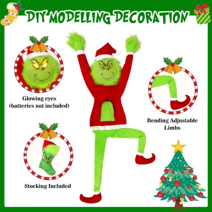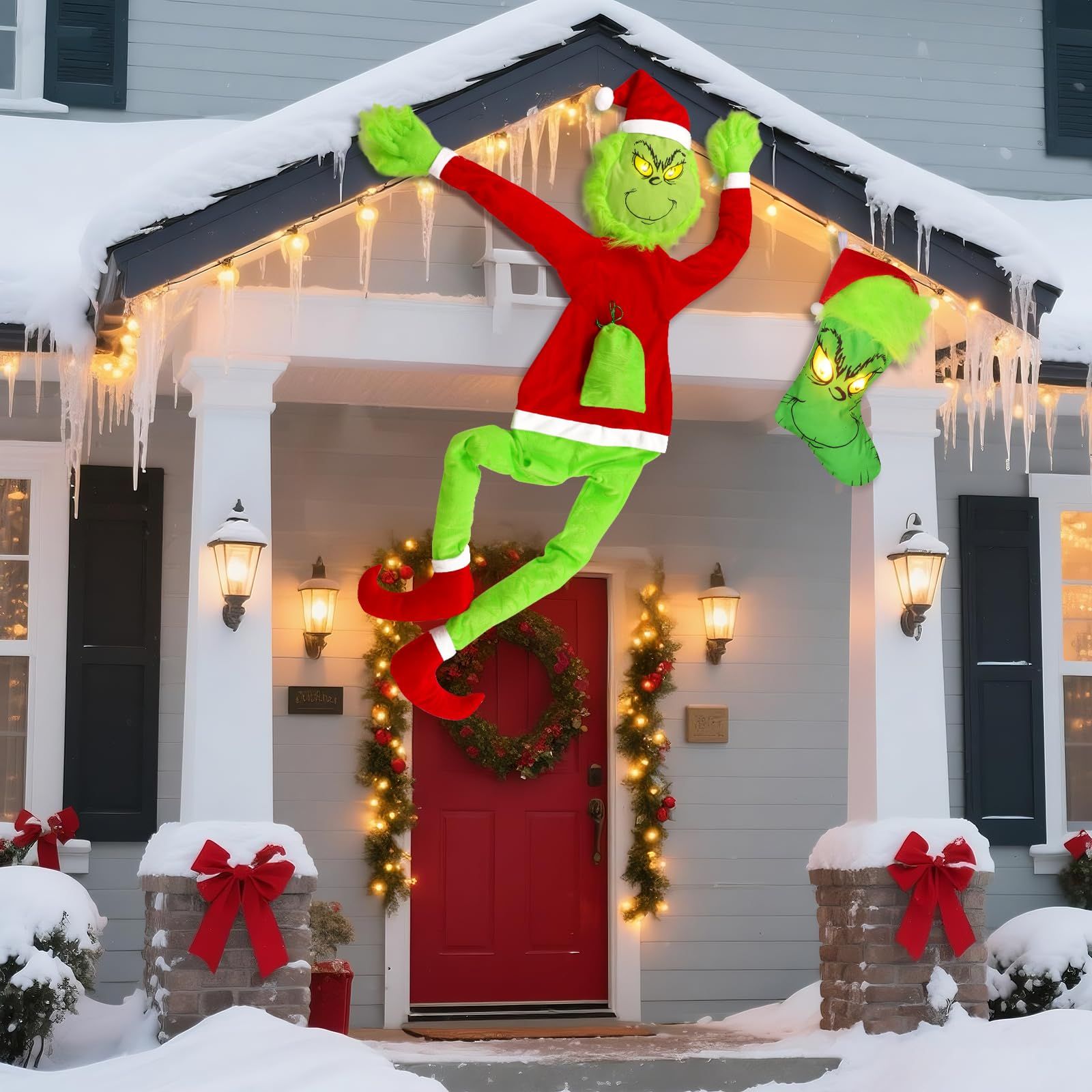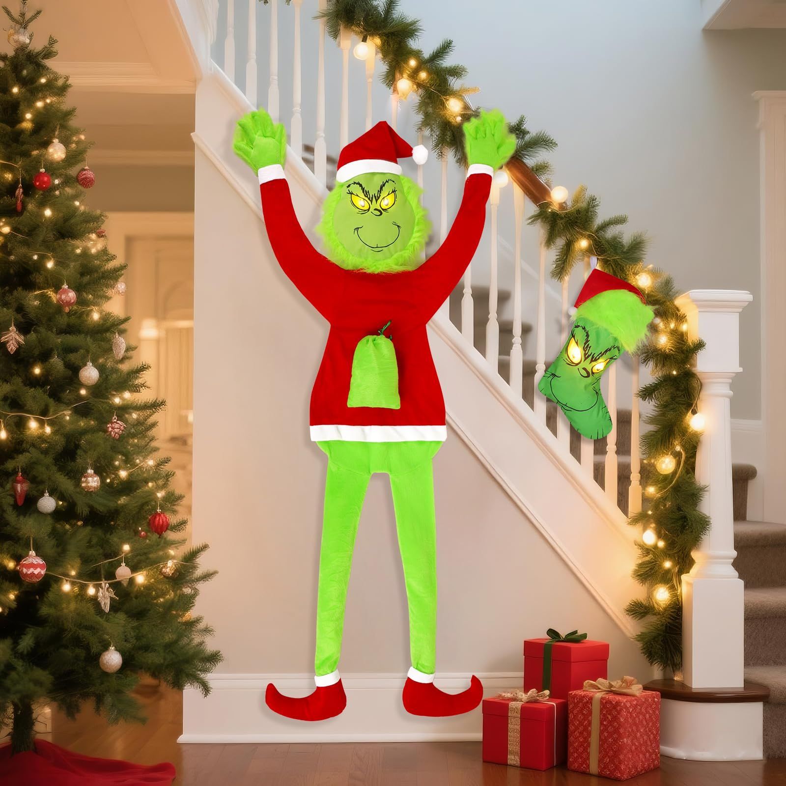 Christmas Grinchs Decorations,170cm Large Green Christmas Funny Doll with Stocking,Bendable Arms & Legs,Whimsical Plush Decoration