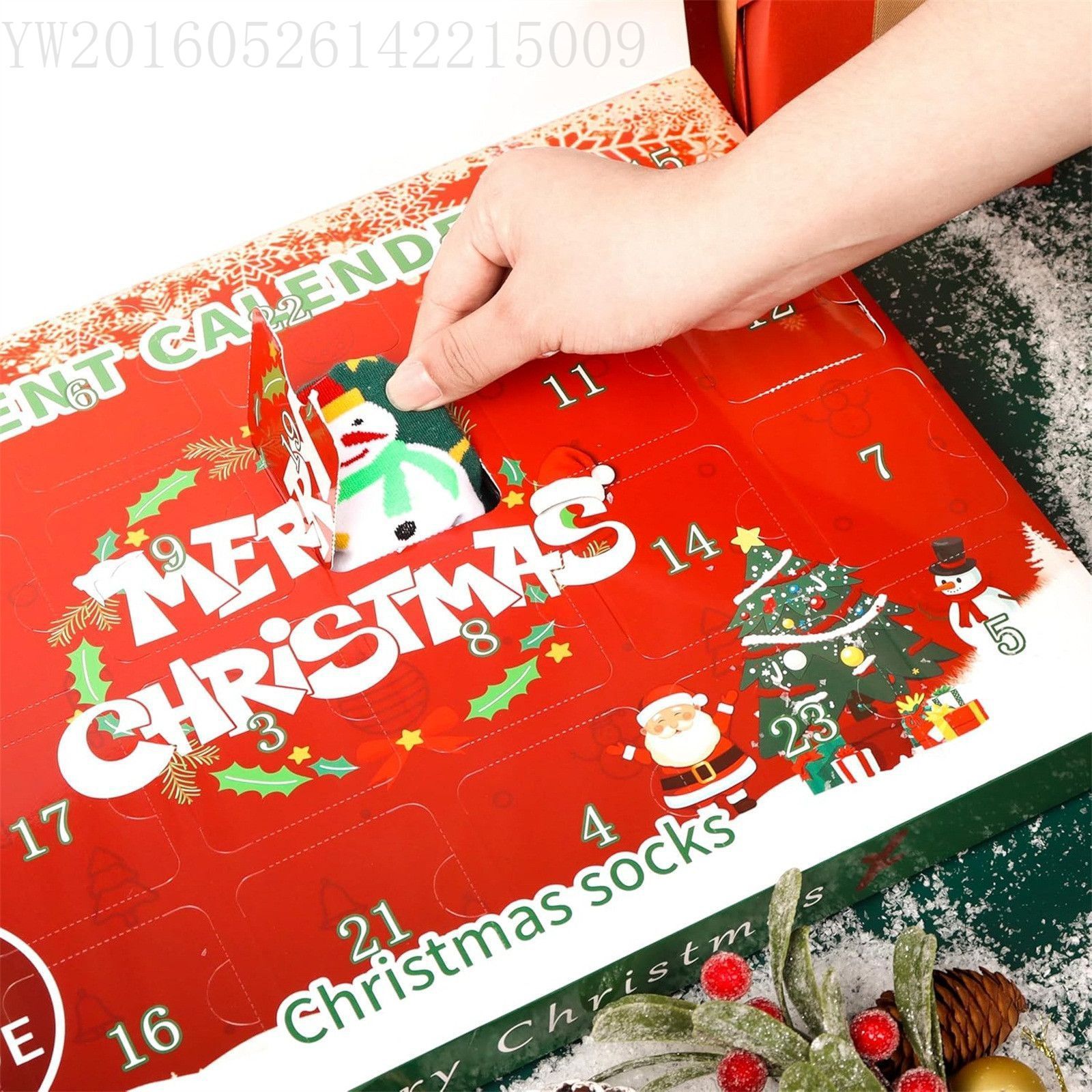 Christmas Stocking Advent Calendar , 24 Days Countdown Advent Box, Santa Claus, Elk, Snowman, Christmas Tree Socks For Christmas Gifts