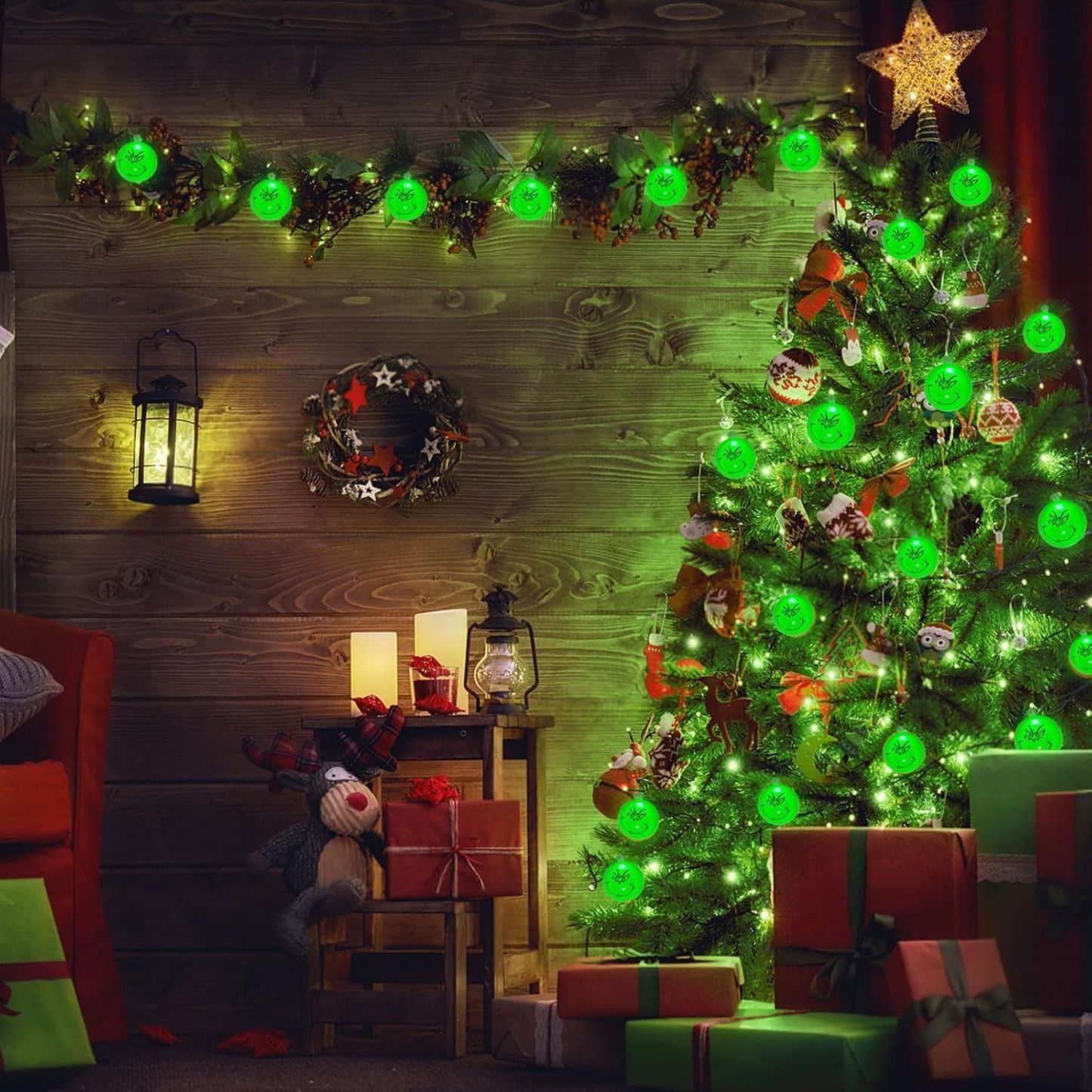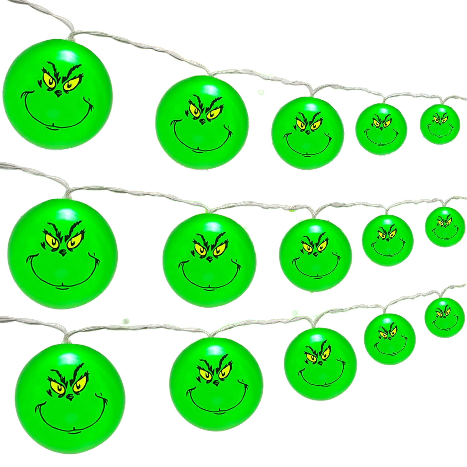 Christmas String Lights 2 Pcs Grinch 20LED 3m Battery Operated Decorations Tree Home Garden Indoor Outdoor Warm Festive Holiday Glow Gift