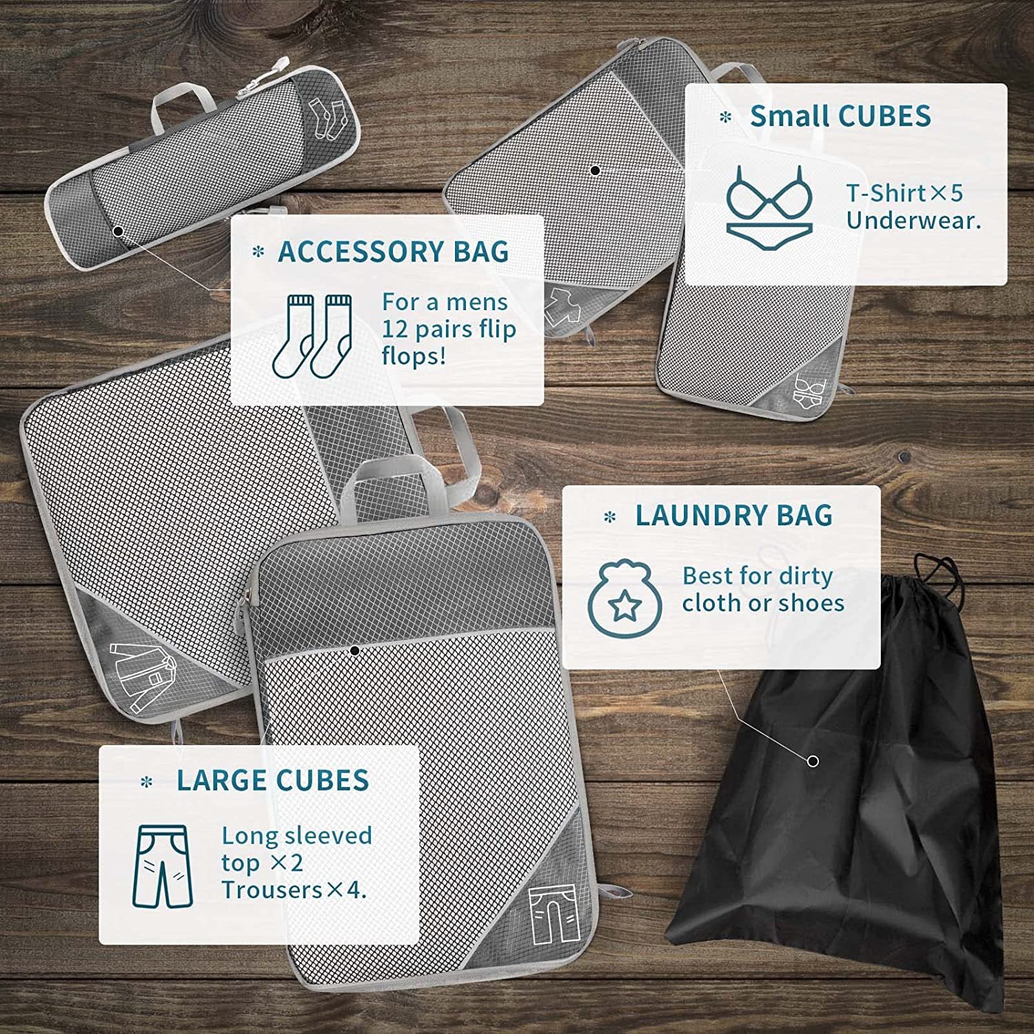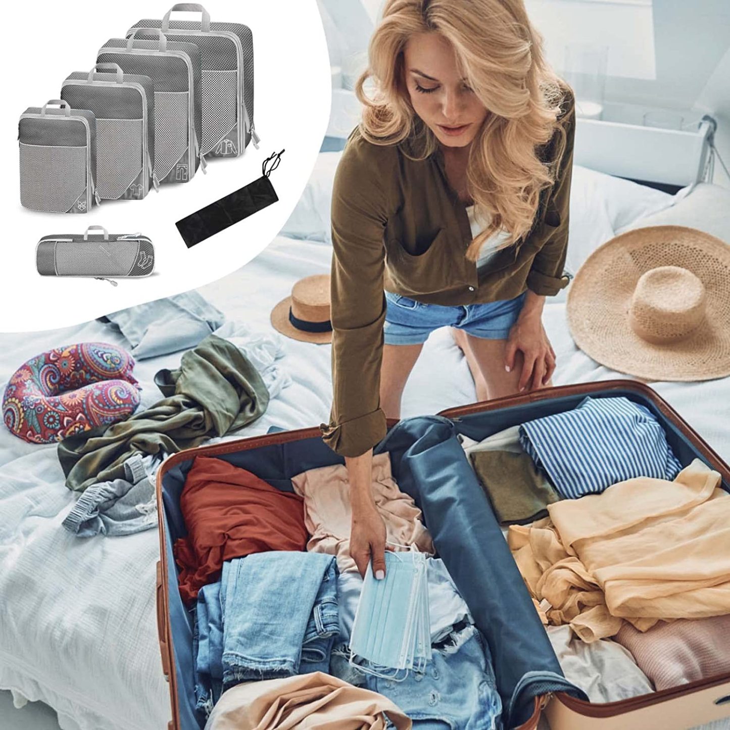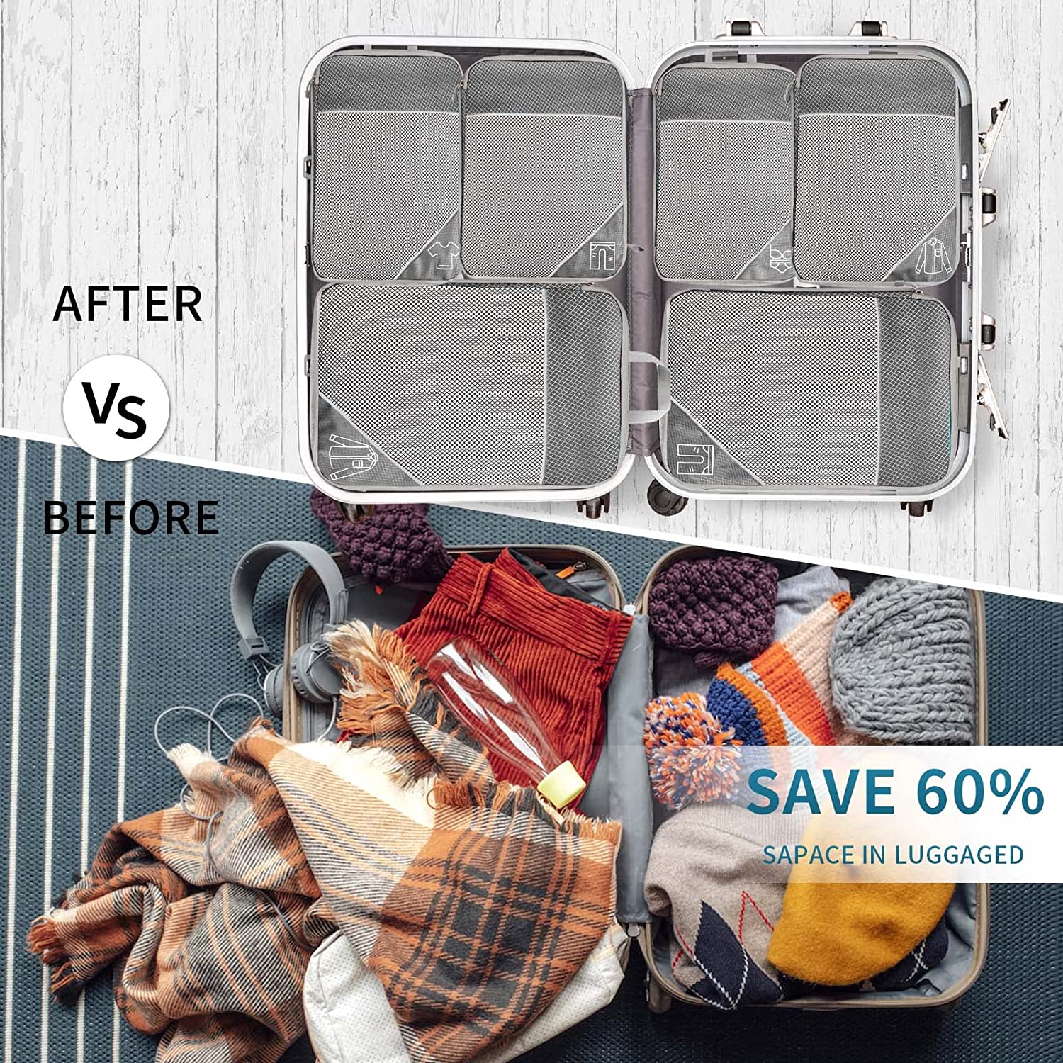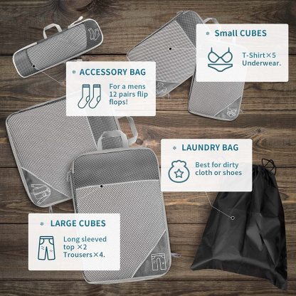 Compression Packing Cube for Suitcase, 6 Pcs Travel Luggage Organizer(Navy Blue)